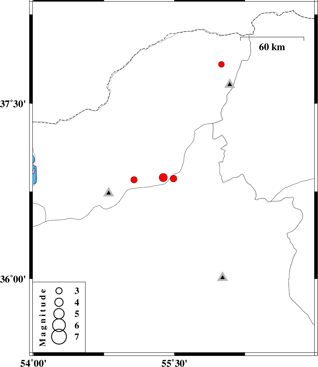 2009/09/29 06:32:04.5 10:02:04.5 36.8755.3814 ML4 Golestan Province, 40 km South of Minodasht