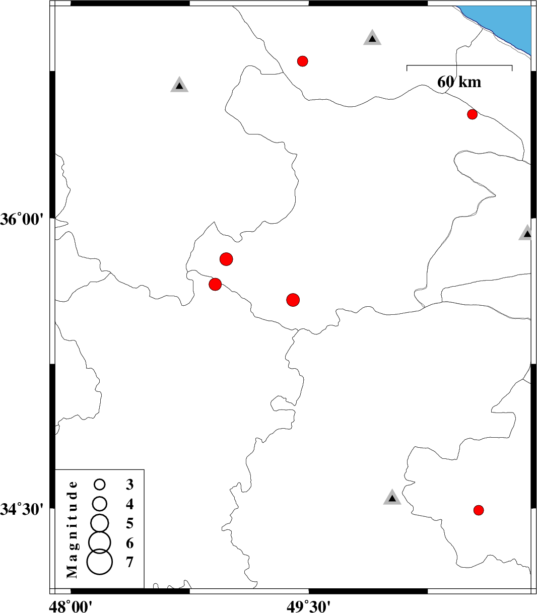 2010/03/04 | 16:38:49.4 | 20:08:49.4 | 35.79 | 48.98 | 33 | ML:3.7 | Ghazvin Province, 46 km North of Razan |