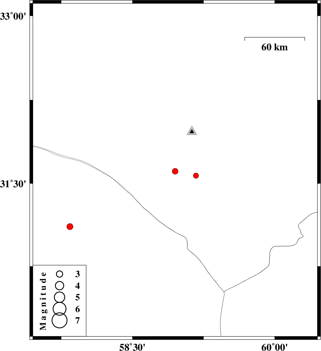 2009/10/09 | 02:02:05.2 | 05:32:05.2 | 31.61 | 58.95 | 18 | ML2.8 | Khorasan(south) Province, 104 km West of Nehbandan | ||