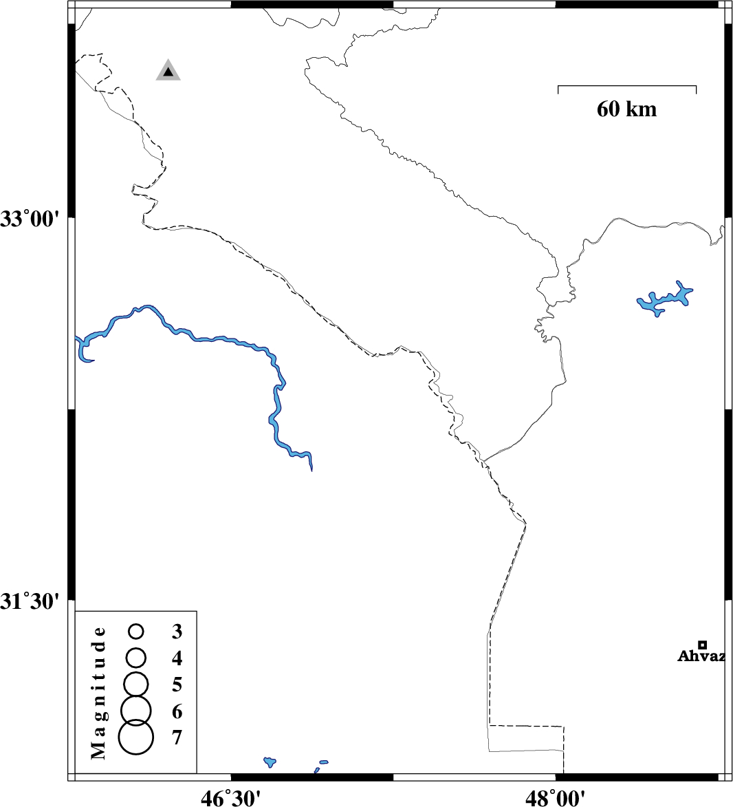 2009/10/09 | 18:32:43.0 | 22:02:43.0 | 32.31 | 47.28 | 39 | ML3.9 | Iraq, 43 km South of Dehloran |