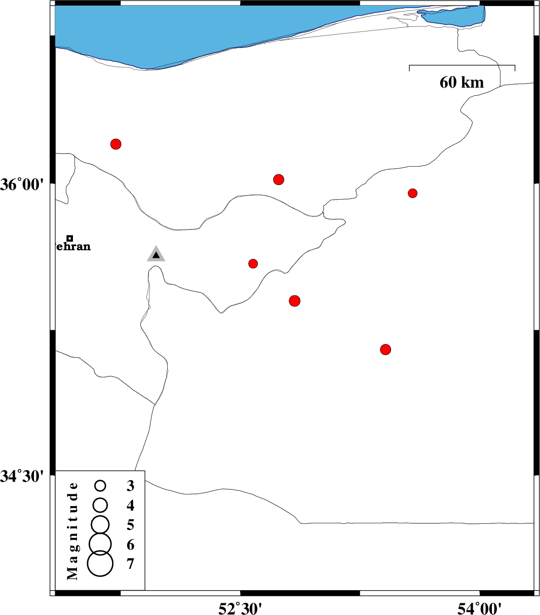 2009/10/09 | 22:02:28.8 | 01:32:28.8 | 35.4 | 52.84 | 14 | ML3.1 | Semnan Province, 40 km South of Firuzkuh | ||