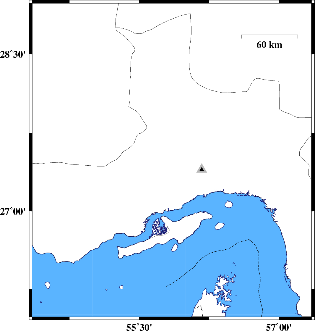 2009/10/05 05:23:23.6 08:53:23.6 27.7757.1814 ML:3.1 Hormozgan Province, 38 km North of Dehbarez