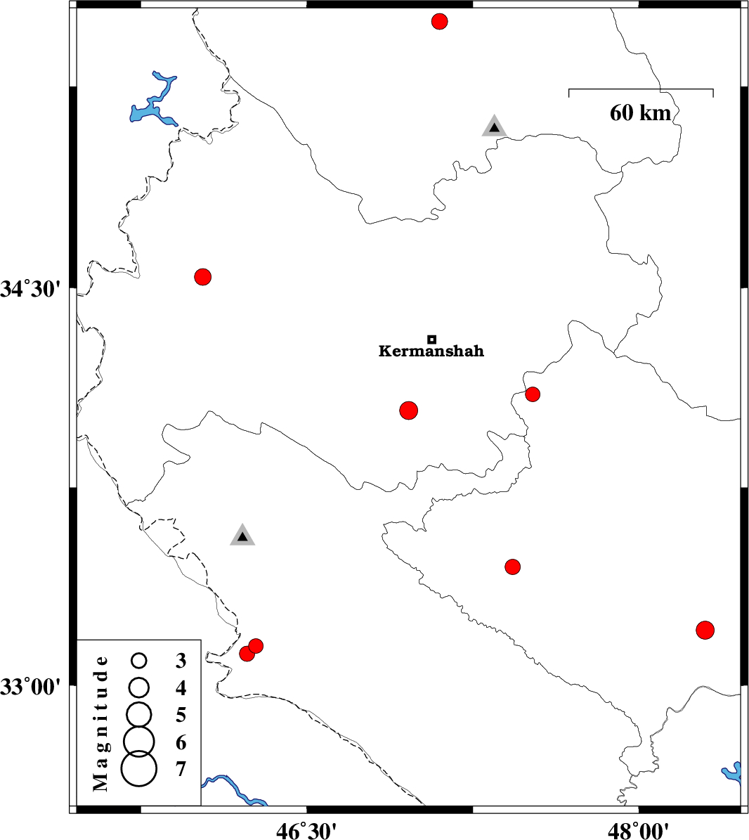 2009/10/10 | 11:42:57.3 | 15:12:57.3 | 34.04 | 46.96 | 14 | ML3.7 | Kermanshah Province, 31 km South-West of Kermanshah | ||