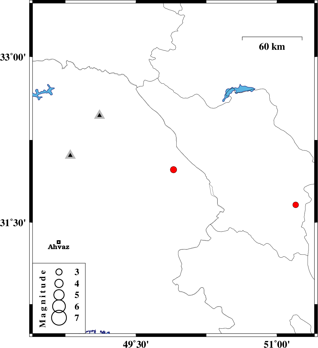 2009/10/18 | 11:12:29.7 | 14:42:29.7 | 31.98 | 49.9 | 14 | ML3.1 | Khoozestan Province, 16 km North of Izeh | ||