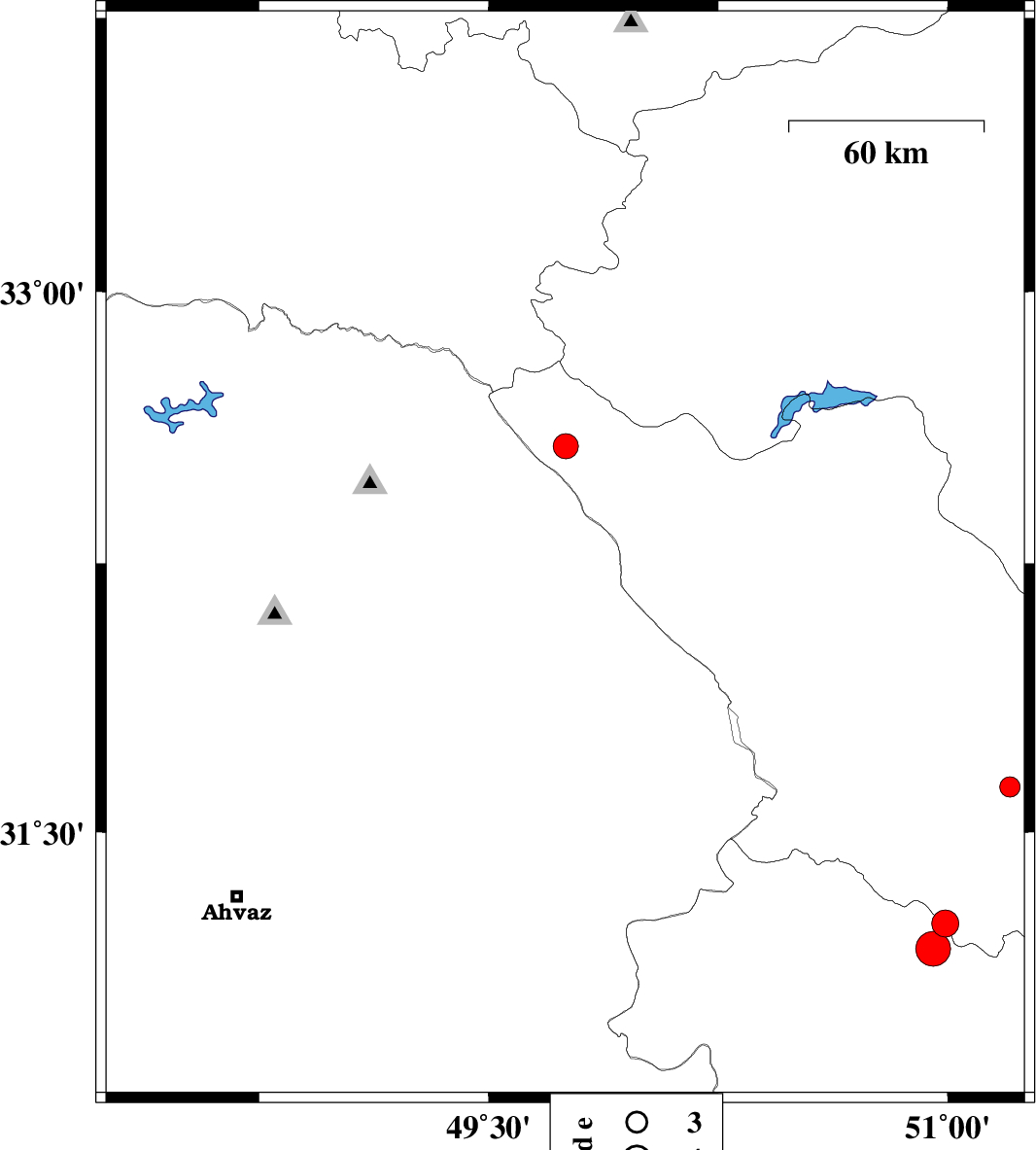 2009/10/10 | 03:32:42.4 | 07:02:42.4 | 31.89 | 49.54 | 18 | ML3.9 | Khoozestan Province, 23 km East of Masjed Soleyman | ||