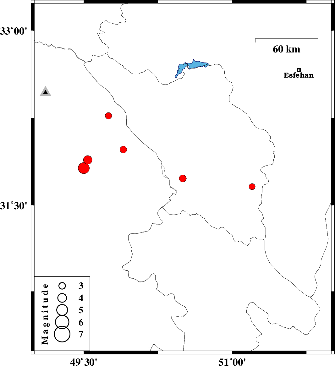 2009/10/12 | 21:00:22.0 | 00:30:22.0 | 31.66 | 51.2 | 14 | ML2.8 | Chaharmahal Bakhtiari Province, 35 km South of Borujen | ||