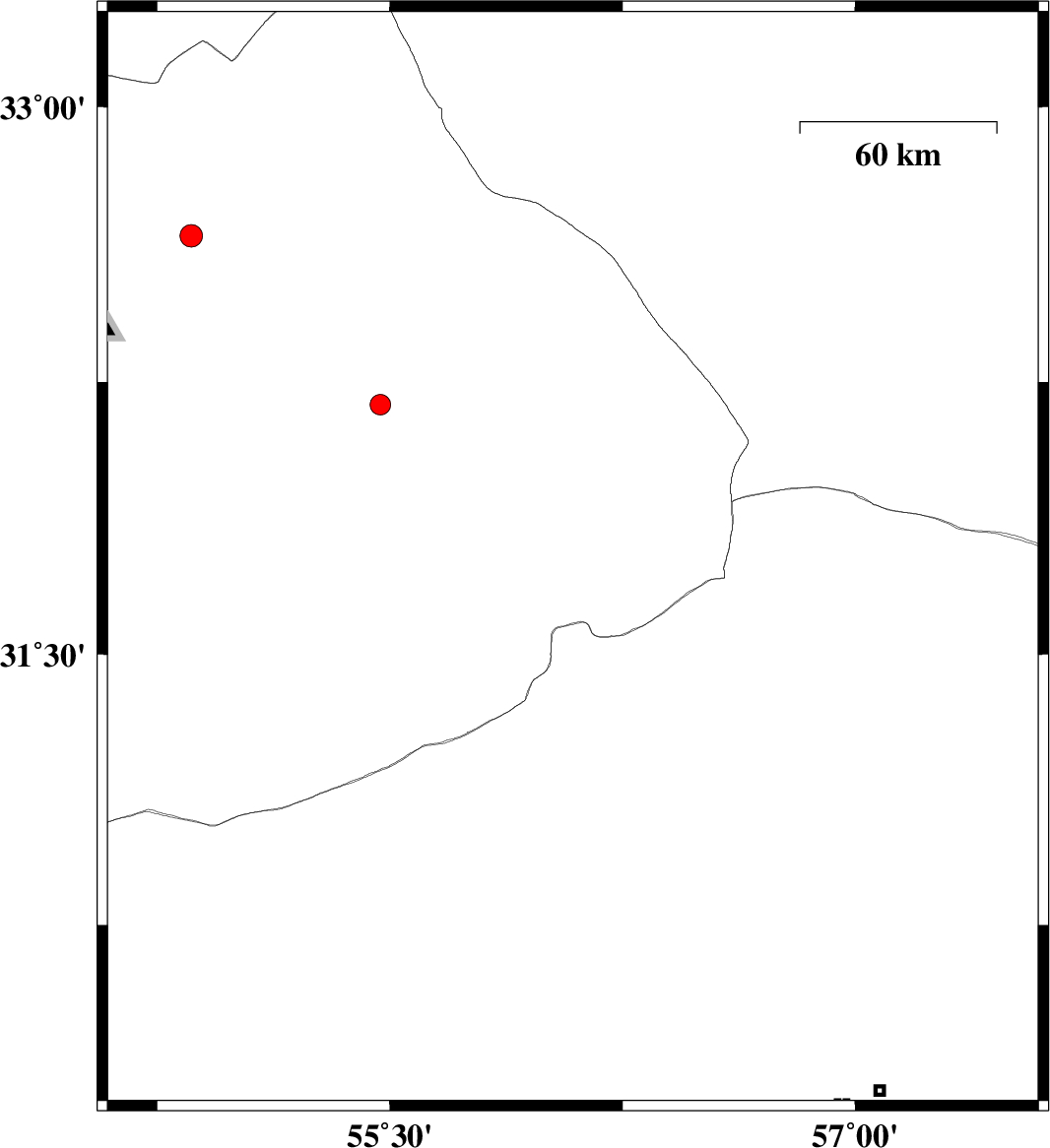 2009/09/30 | 00:12:01.1 | 03:42:01.1 | 32.04 | 55.9 | 15 | ML:3.3 | Yazd Province, 68 km North-East of Bafq | ||