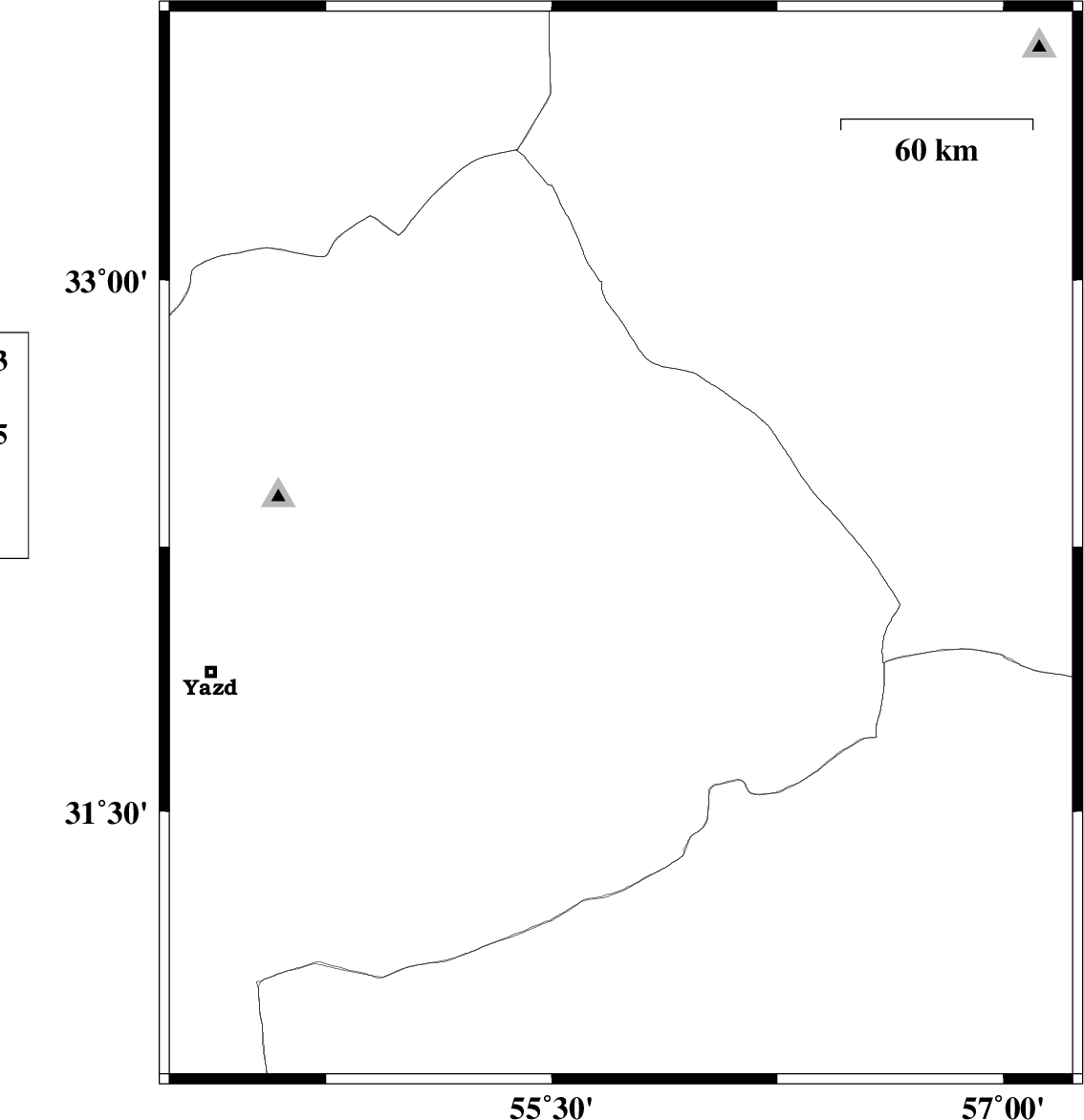 2009/10/22 | 16:50:42.6 | 20:20:42.6 | 32.25 | 55.73 | 15 | ML:2.9 | Yazd Province, 78 km North-East of Bafq |