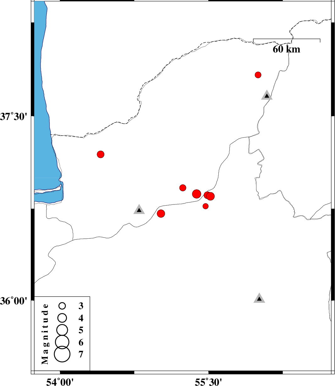 2009/09/29 | 06:32:04.5 | 10:02:04.5 | 36.87 | 55.38 | 14 | ML4 | Golestan Province, 40 km South of Minodasht |