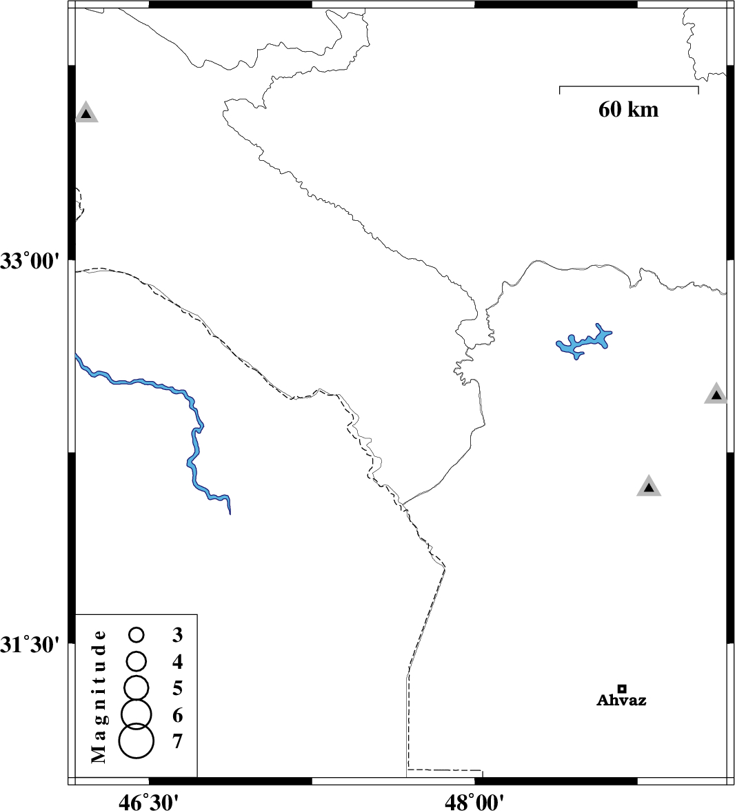 2009/11/17 | 12:48:40.1 | 16:18:40.1 | 32.47 | 47.66 | 42 | ML2.7 | Ilam Province, 45 km South-East of Dehloran |