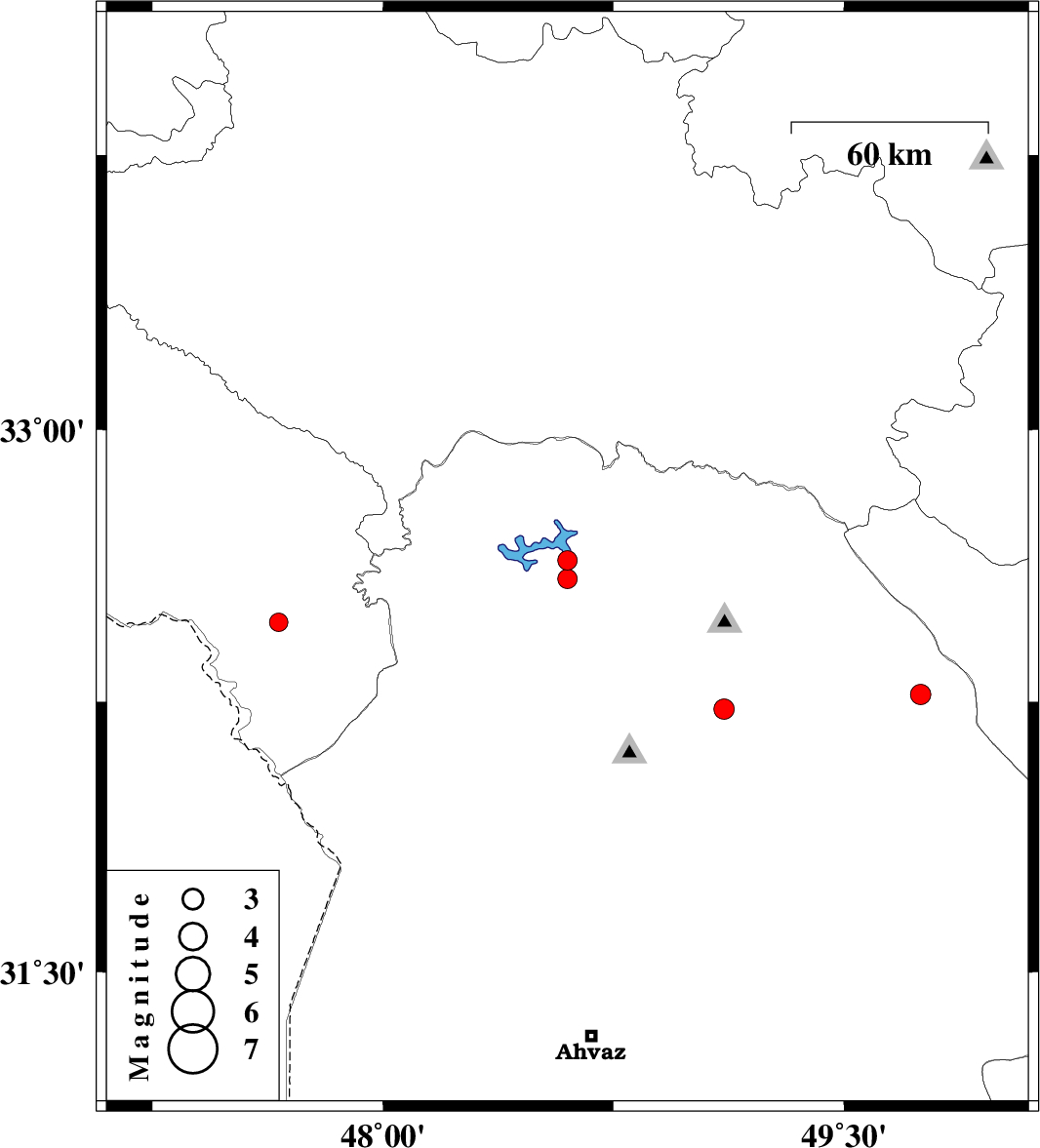 2009/11/19 | 12:24:33.6 | 15:54:33.6 | 32.59 | 48.6 | 17 | ML2.8 | Khoozestan Province, 27 km North-East of Andimeshk | ||