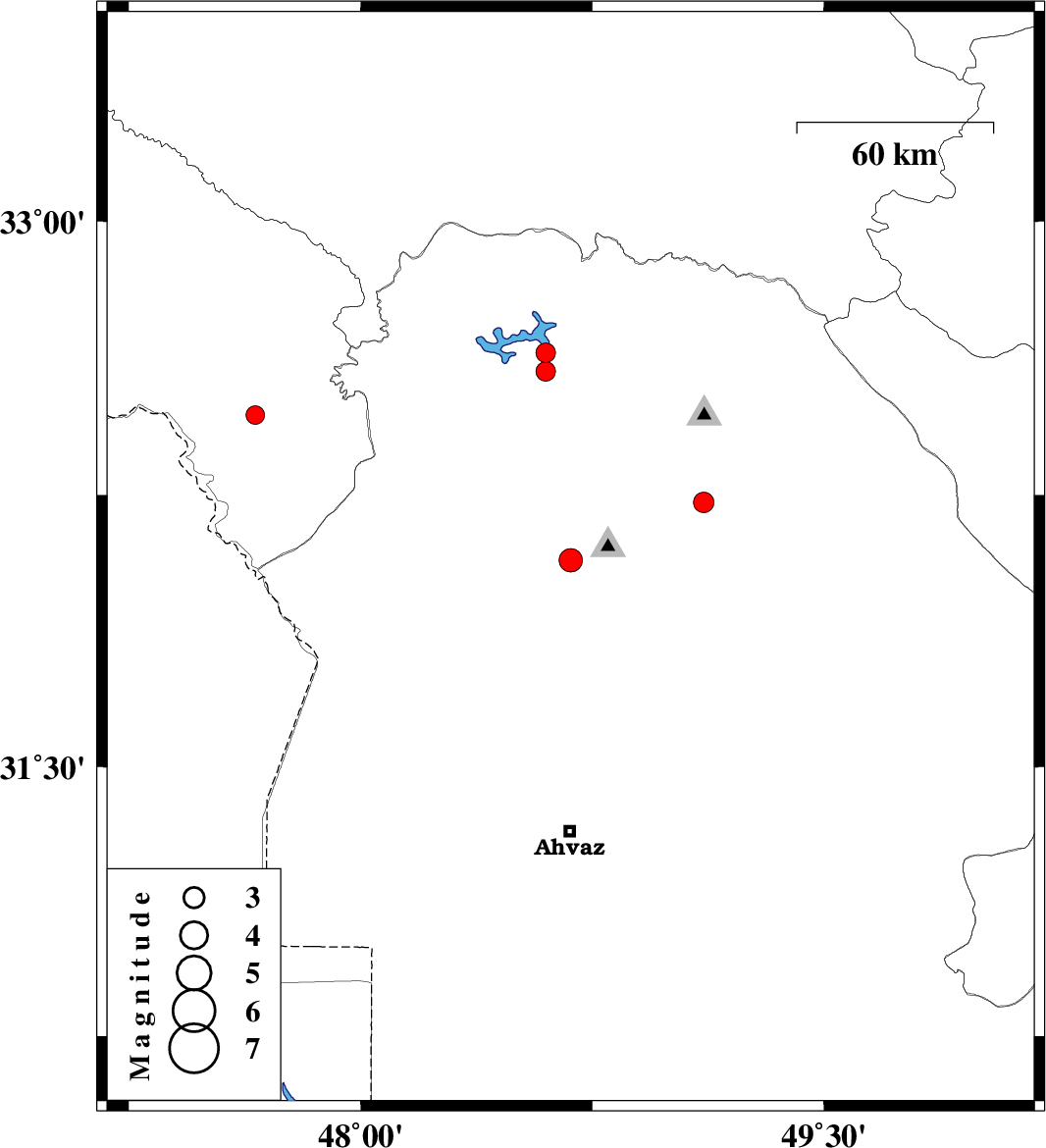 2009/11/19 | 12:24:33.6 | 15:54:33.6 | 32.59 | 48.6 | 17 | ML2.8 | Khoozestan Province, 27 km North-East of Andimeshk | ||
