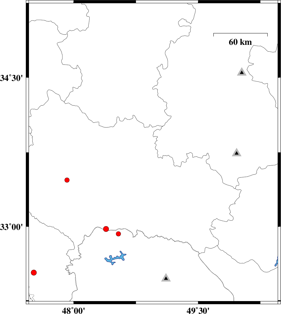 2009/12/04 | 06:02:18.8 | 09:32:18.8 | 33.35 | 47.94 | 32 | ML3 | Lorestan Province, 30 km North-East of Pol-e dokhtar | ||
