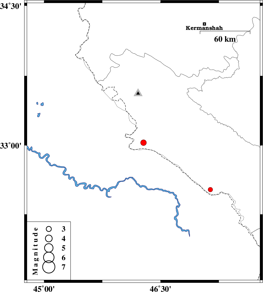 2009/12/04 | 03:26:18.6 | 06:56:18.6 | 32.52 | 47.14 | 15 | ML2.7 | Ilam Province, 22 km South-West of Dehloran |