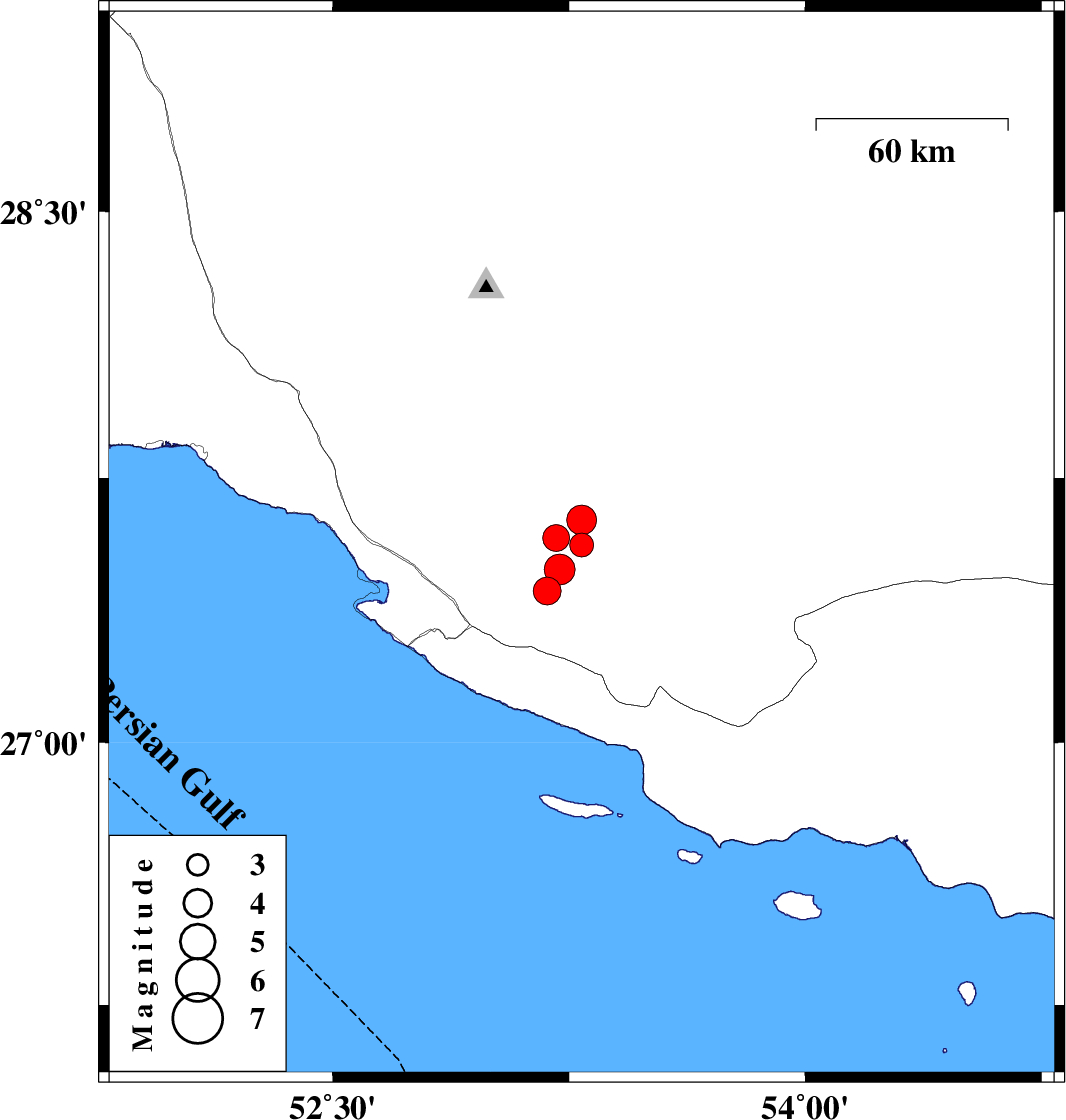 2009/12/12 | 01:58:34.5 | 05:28:34.5 | 27.63 | 53.29 | 26 | ML:4.2 | Fars Province, 35 km North-East of Lamerd |