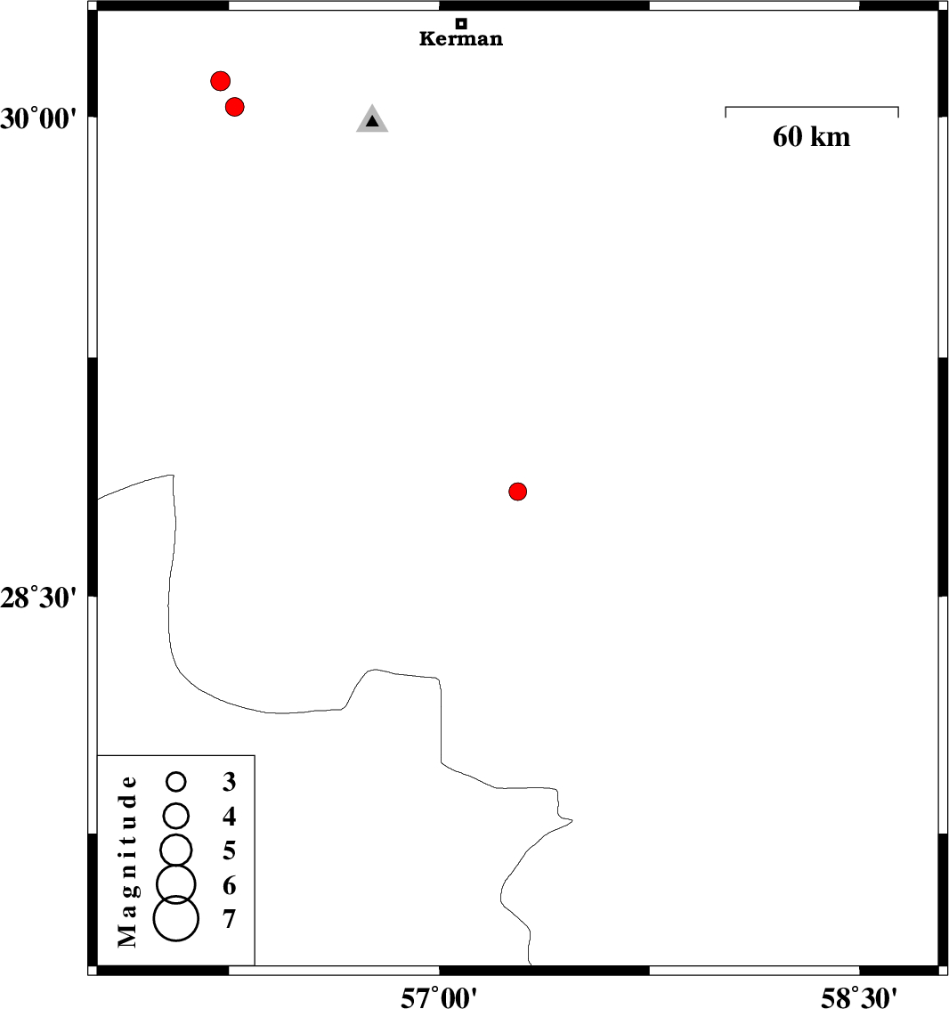 2009/12/29 | 09:34:04.0 | 13:04:04.0 | 28.83 | 57.28 | 14 | ML2.8 | Kerman Province, 48 km North-West of Jiroft | ||