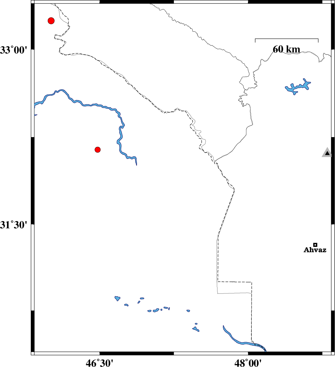 2009/12/26 | 15:18:58.4 | 18:48:58.4 | 32.52 | 47.76 | 15 | ML:3.1 | Ilam Province, 56 km West of Andimeshk | ||