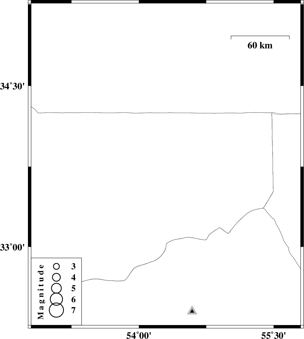 2009/12/06 | 16:49:34.9 | 20:19:34.9 | 33.76 | 54.3 | 15 | ML:3.2 | Esfahan Province, 163 km North-East of Ardakan |