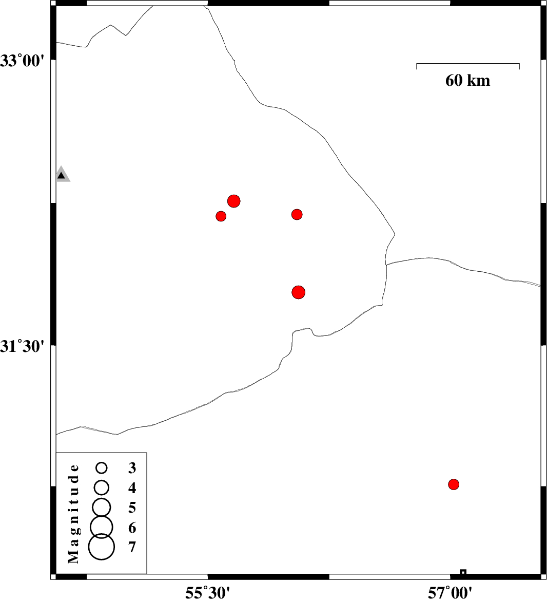 2009/12/01 | 09:32:00.8 | 13:02:00.8 | 32.18 | 55.58 | 14 | ML:2.8 | Yazd Province, 66 km North-East of Bafq | ||