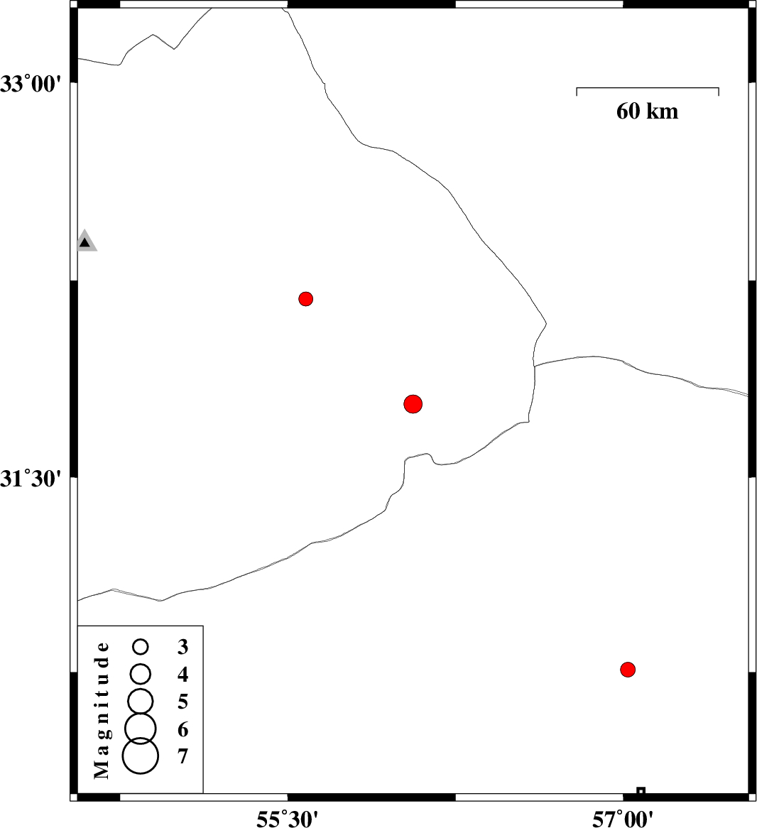 2009/12/01 | 09:32:00.8 | 13:02:00.8 | 32.18 | 55.58 | 14 | ML:2.8 | Yazd Province, 66 km North-East of Bafq |