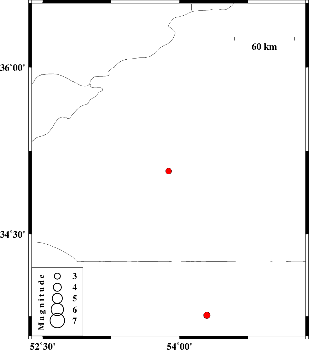 2009/12/10 | 15:16:50.4 | 18:46:50.4 | 35.07 | 53.88 | 14 | ML2.9 | Semnan Province, 70 km South-East of Semnan | ||