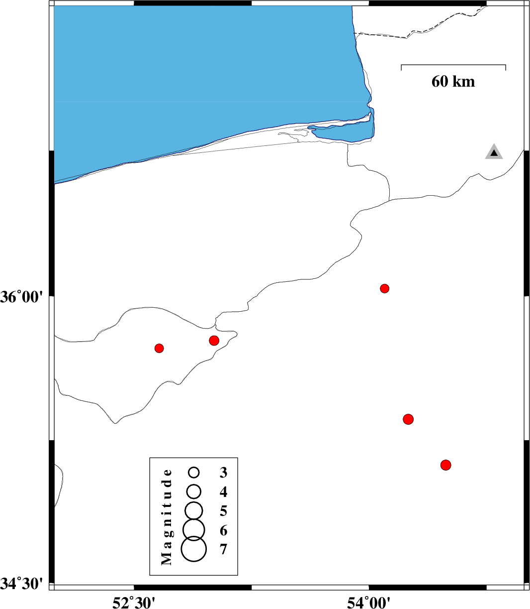 2009/12/19 | 04:10:23.8 | 07:40:23.8 | 36.46 | 54.68 | 18 | ML3.4 | Semnan Province, 26 km West of Shahrud | ||