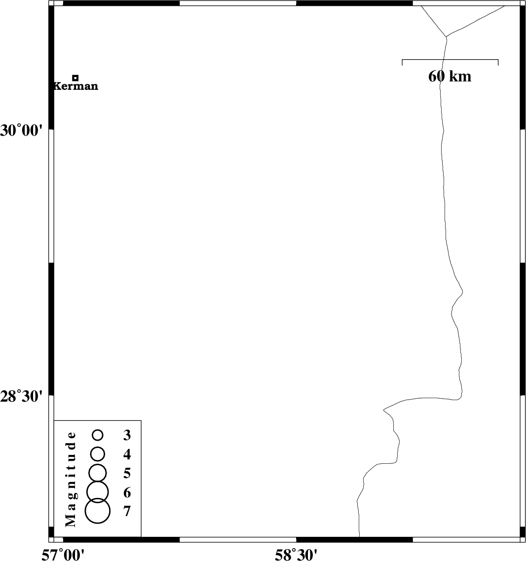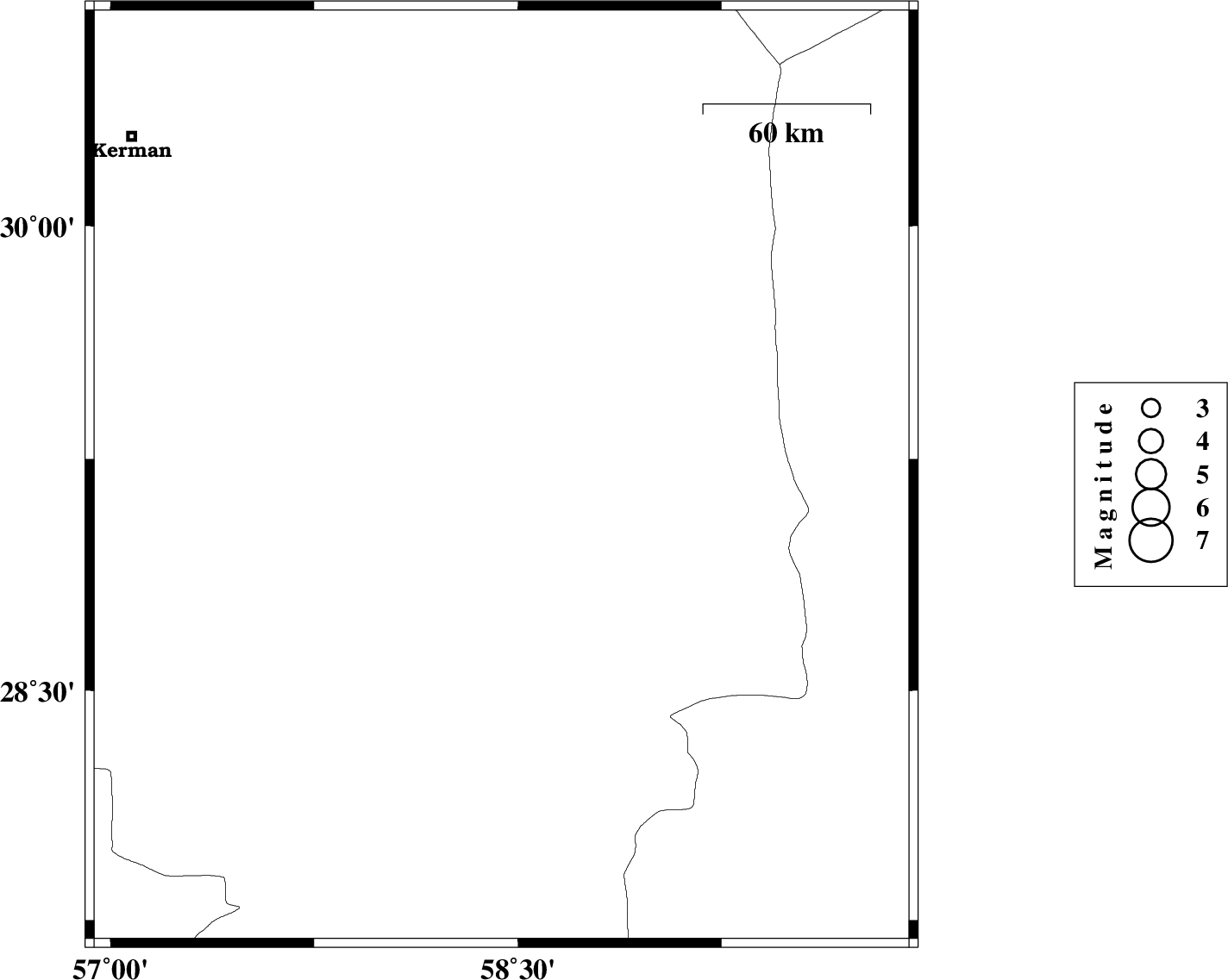 | 2010/04/10 | 23:49:58.9 | 04:19:58.9 | 29.19 | 58.44 | 14 | ML3.7 | Kerman Province, 12 km Bam |