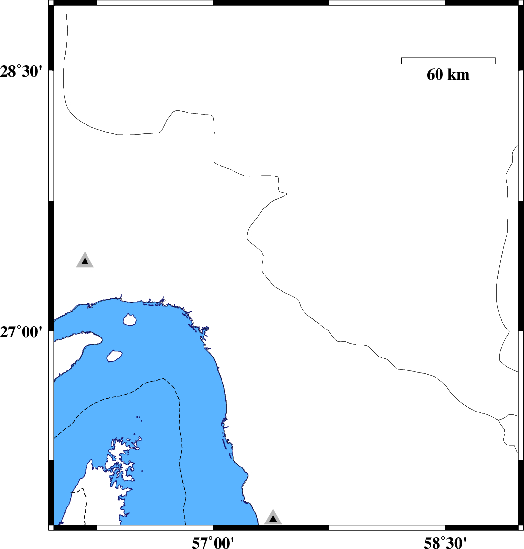| 2010/04/20 | 13:51:36.3 | 18:21:36.3 | 27.37 | 57.47 | 14 | ML3.2 | Kerman Province, 5 km Manujan | ||