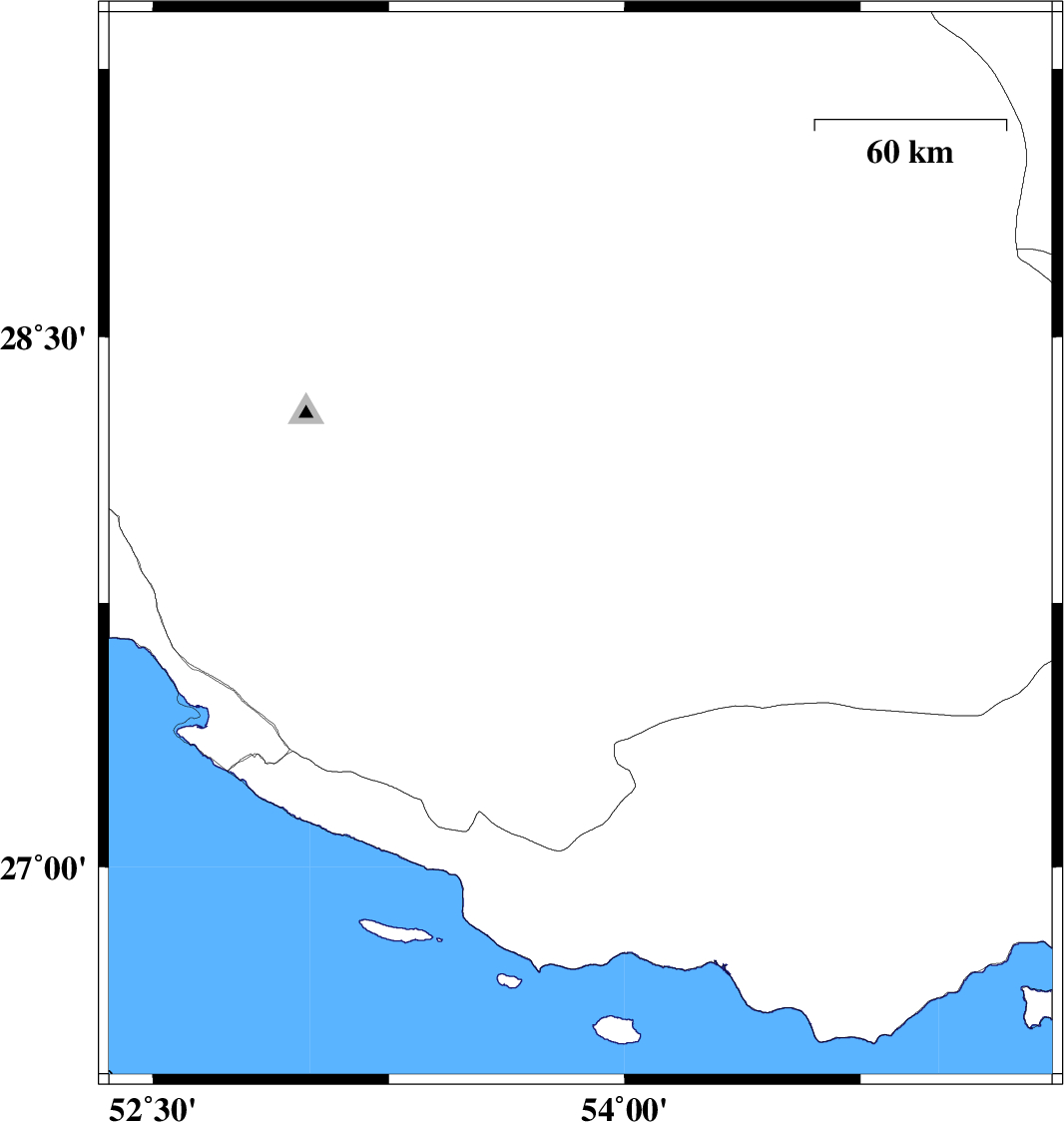 | 2010/03/27 | 00:48:01.8 | 05:18:01.8 | 28.07 | 53.32 | 43 | ML2.9 | Fars Province, 53 km South-West of Jahrom |