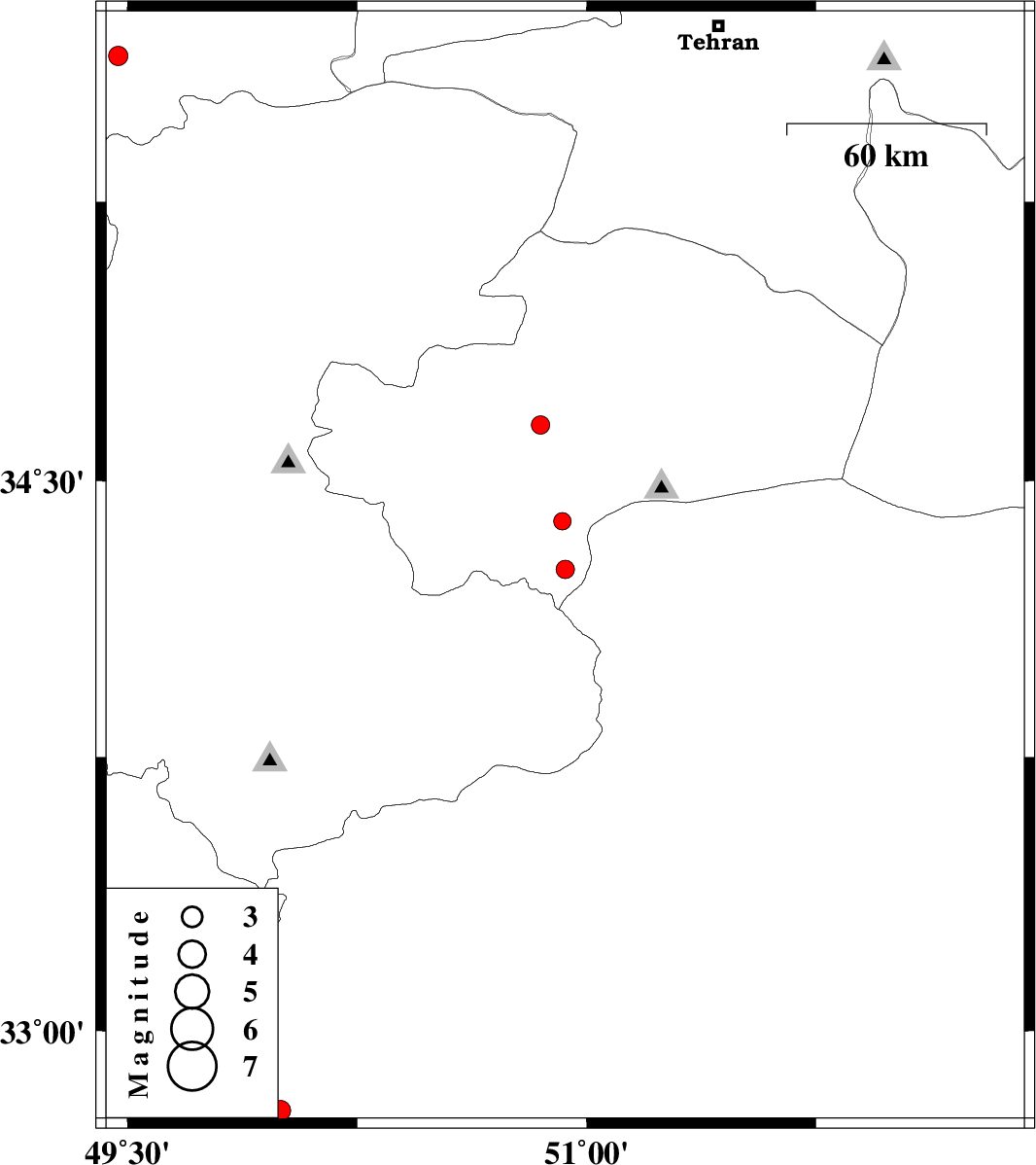 2010/04/21 | 00:34:46.7 | 05:04:46.7 | 34.39 | 50.92 | 16 | ML:2.6 | Qom Province, 29 km South of Qom | ||