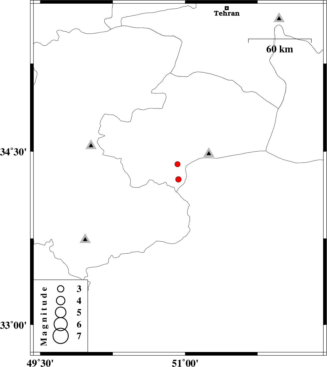 2010/04/21 | 00:34:46.7 | 05:04:46.7 | 34.39 | 50.92 | 16 | ML:2.6 | Qom Province, 29 km South of Qom |