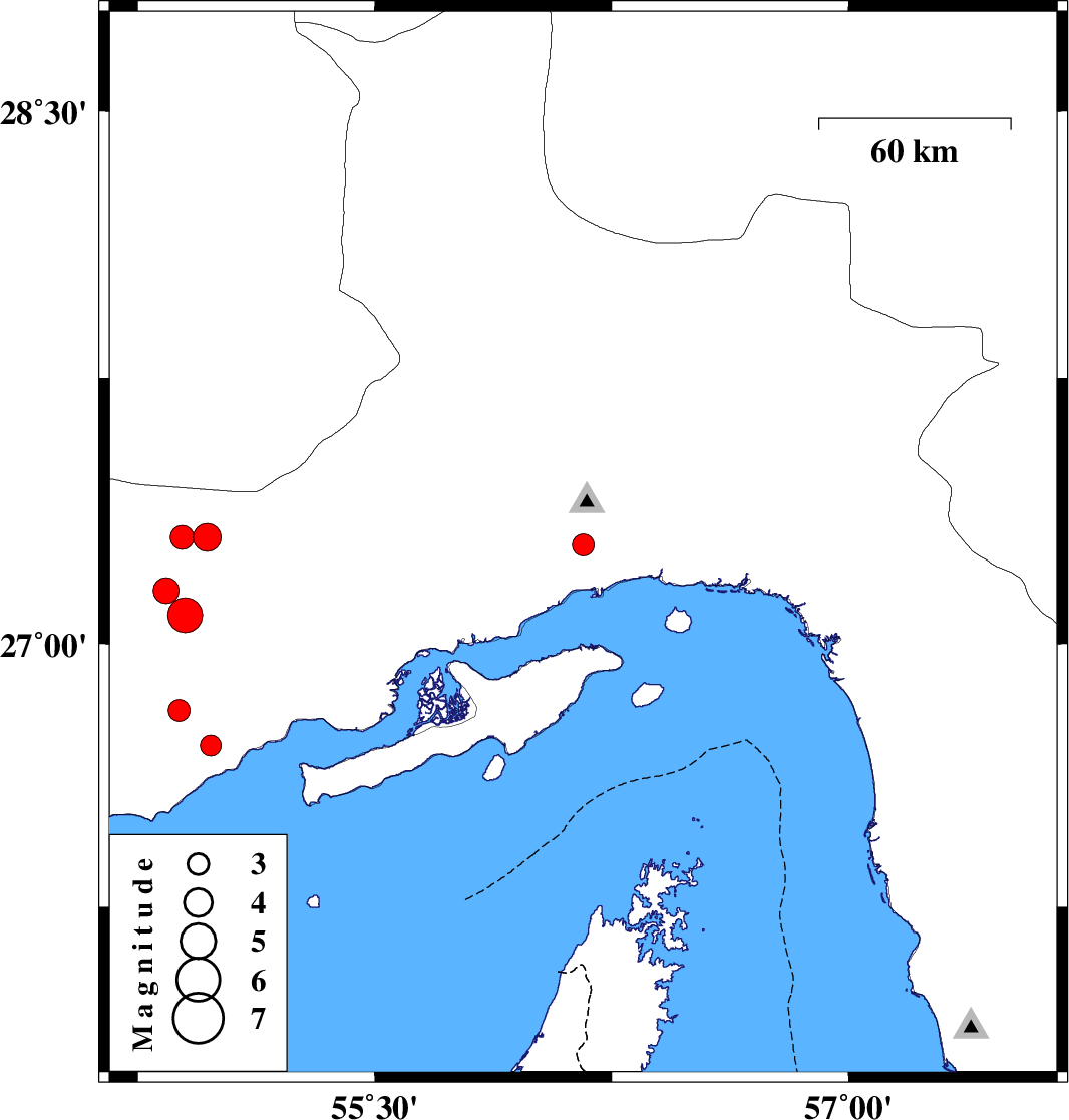 | 2010/04/28 | 09:45:24.3 | 14:15:24.3 | 26.71 | 54.98 | 46 | ML3 | Hormozgan Province, 24 km North-East of Bandar-e lengeh | ||