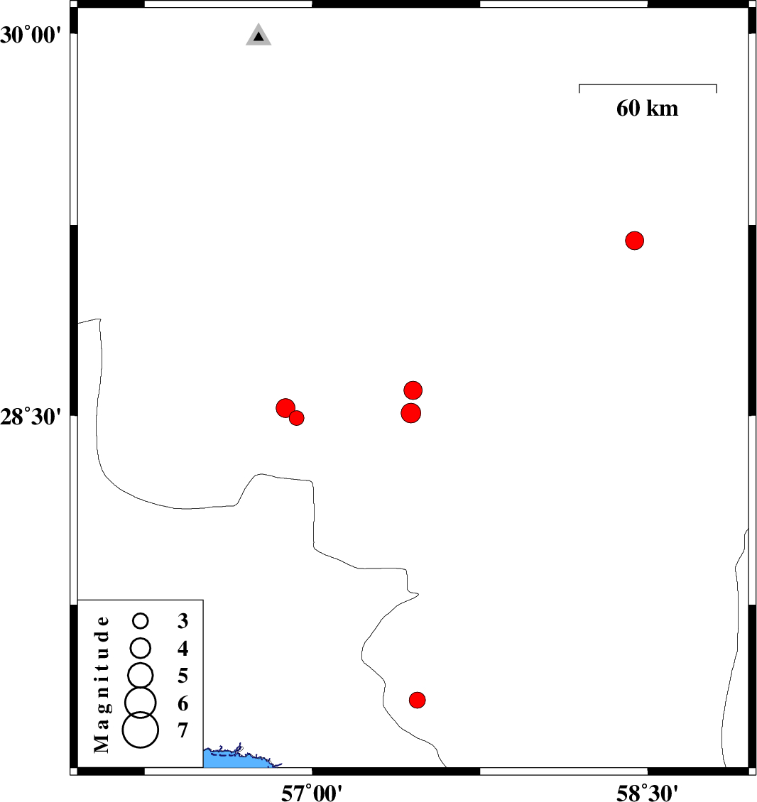 | 2010/04/29 | 21:14:02.2 | 01:44:02.2 | 28.51 | 57.44 | 39 | ML3.9 | Kerman Province, 34 km South-West of Jiroft | ||