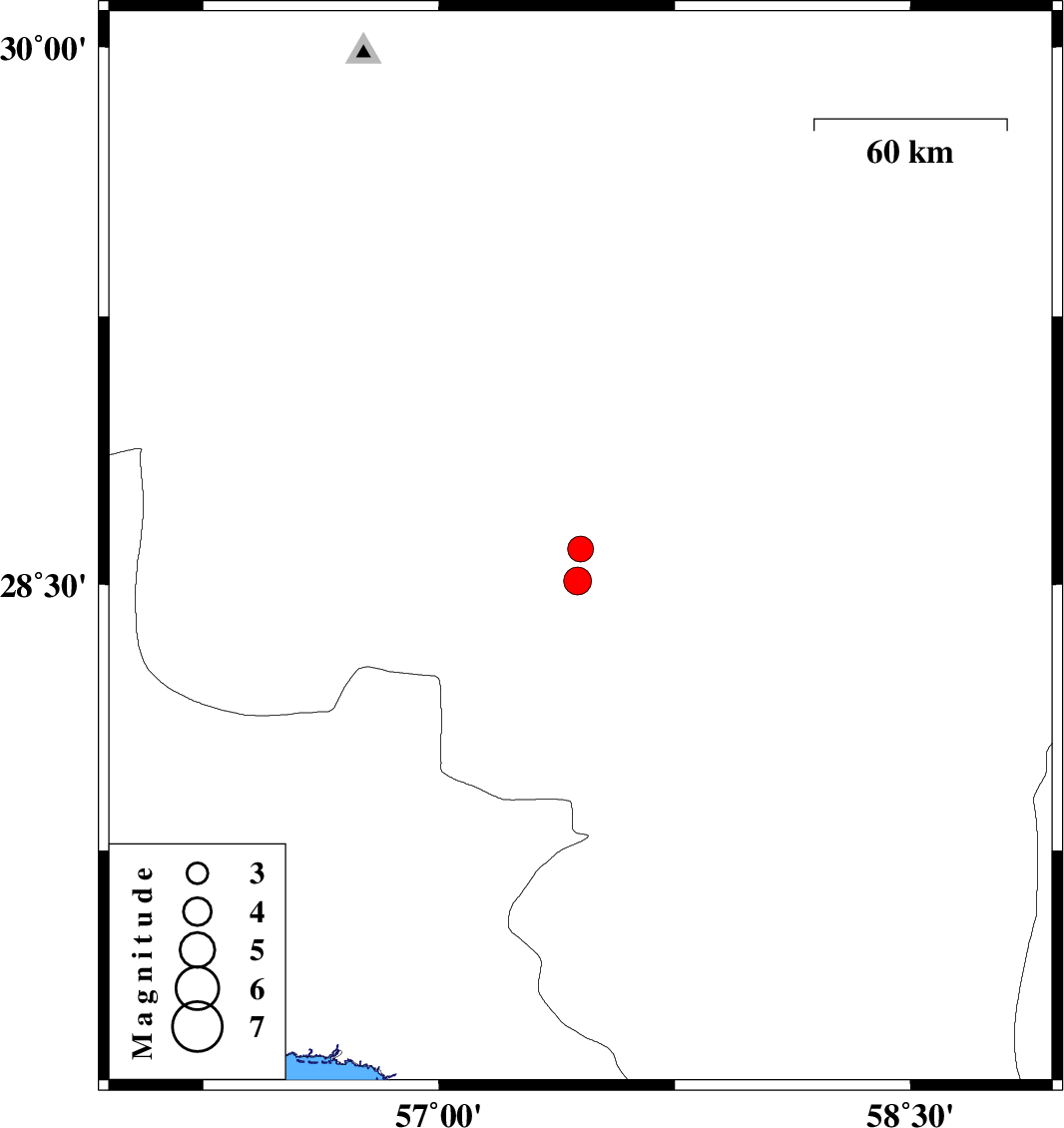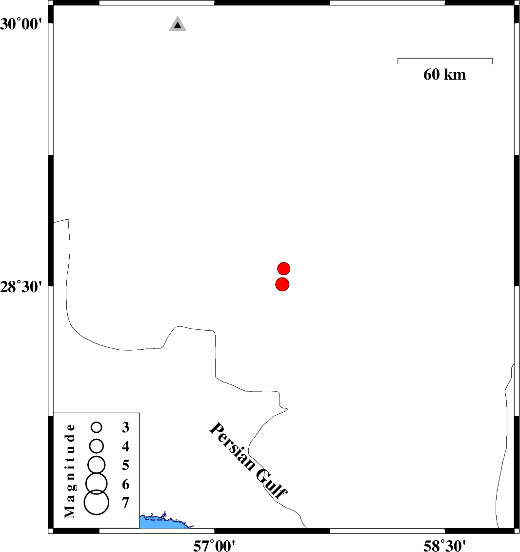 | 2010/04/29 | 21:14:02.2 | 01:44:02.2 | 28.51 | 57.44 | 39 | ML3.9 | Kerman Province, 34 km South-West of Jiroft | ||