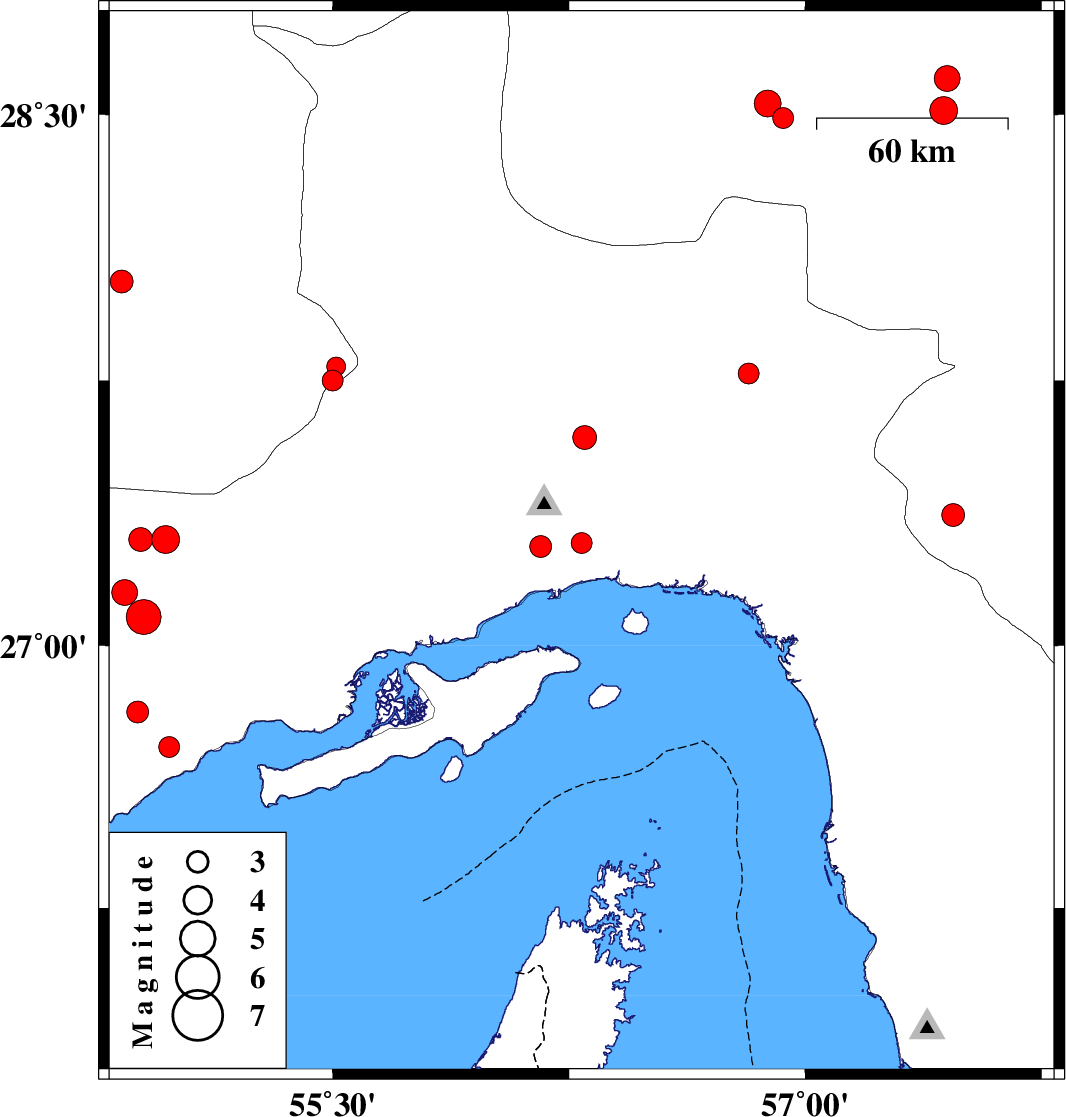 | 2010/04/28 | 09:45:24.3 | 14:15:24.3 | 26.71 | 54.98 | 46 | ML3 | Hormozgan Province, 24 km North-East of Bandar-e lengeh | ||