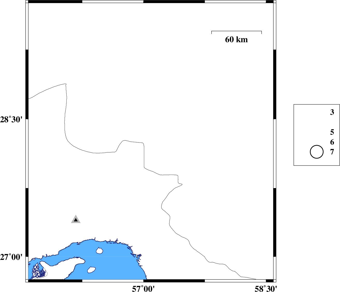 | 2010/05/03 | 20:22:32.9 | 00:52:32.9 | 27.29 | 56.29 | 14 | ML3 | Hormozgan Province, 12 km North of Bandar-e abbas | ||