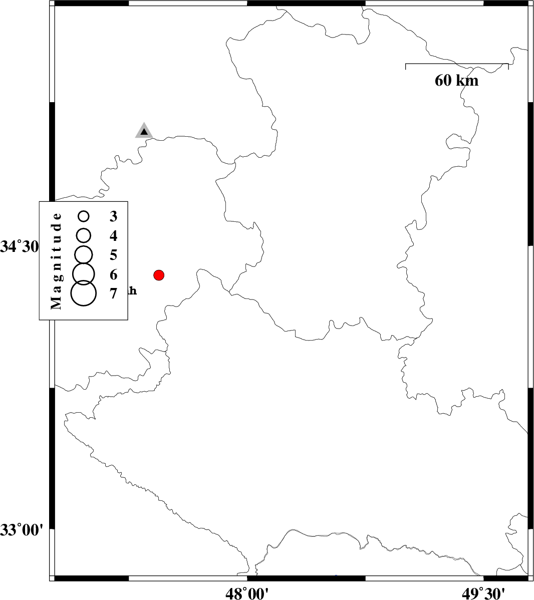 | 2010/04/27 | 08:18:00.2 | 12:48:00.2 | 33.83 | 48.7 | 14 | ML3 | Lorestan Province, 9 km Borujerd | ||