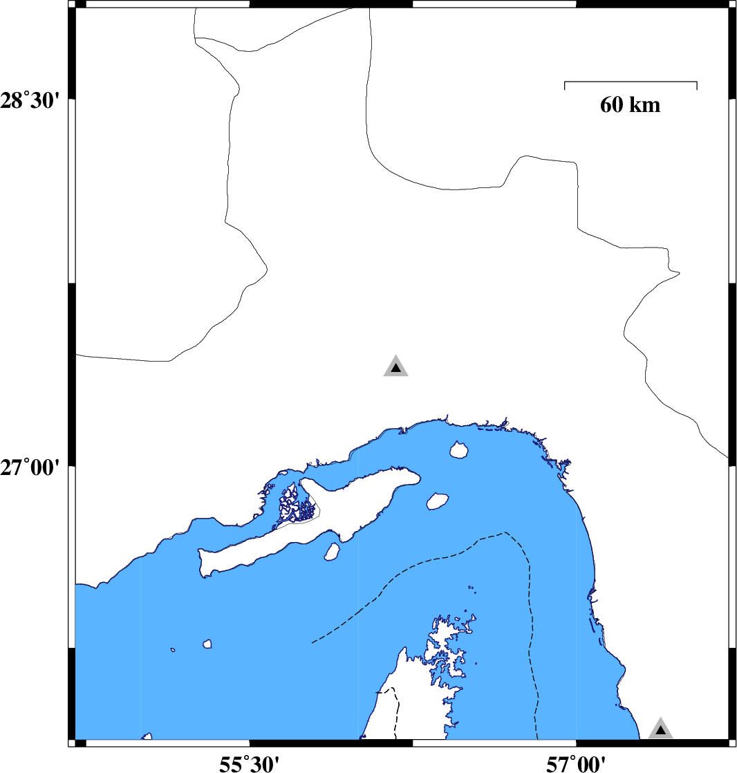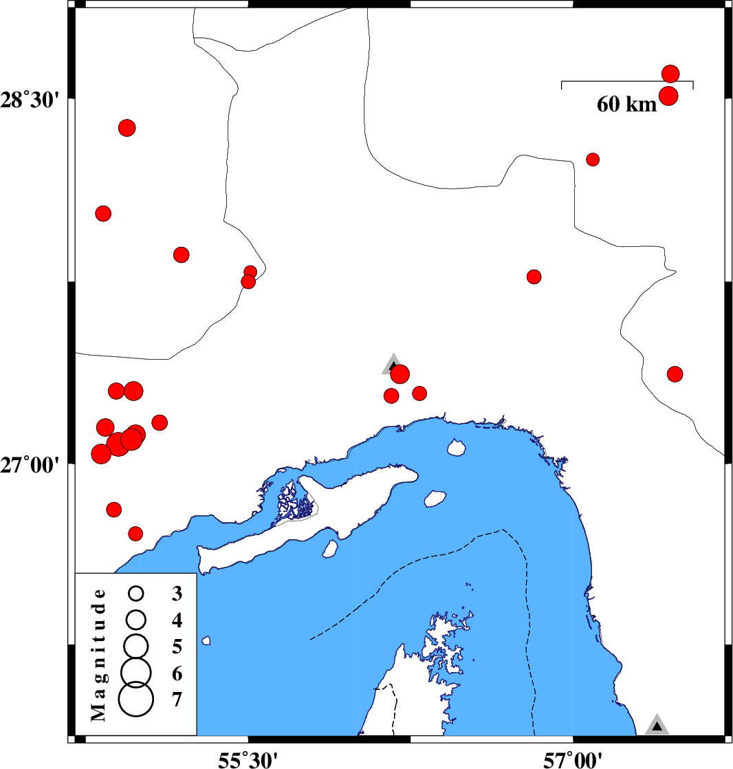 | 2010/04/28 | 09:45:24.3 | 14:15:24.3 | 26.71 | 54.98 | 46 | ML3 | Hormozgan Province, 24 km North-East of Bandar-e lengeh | ||