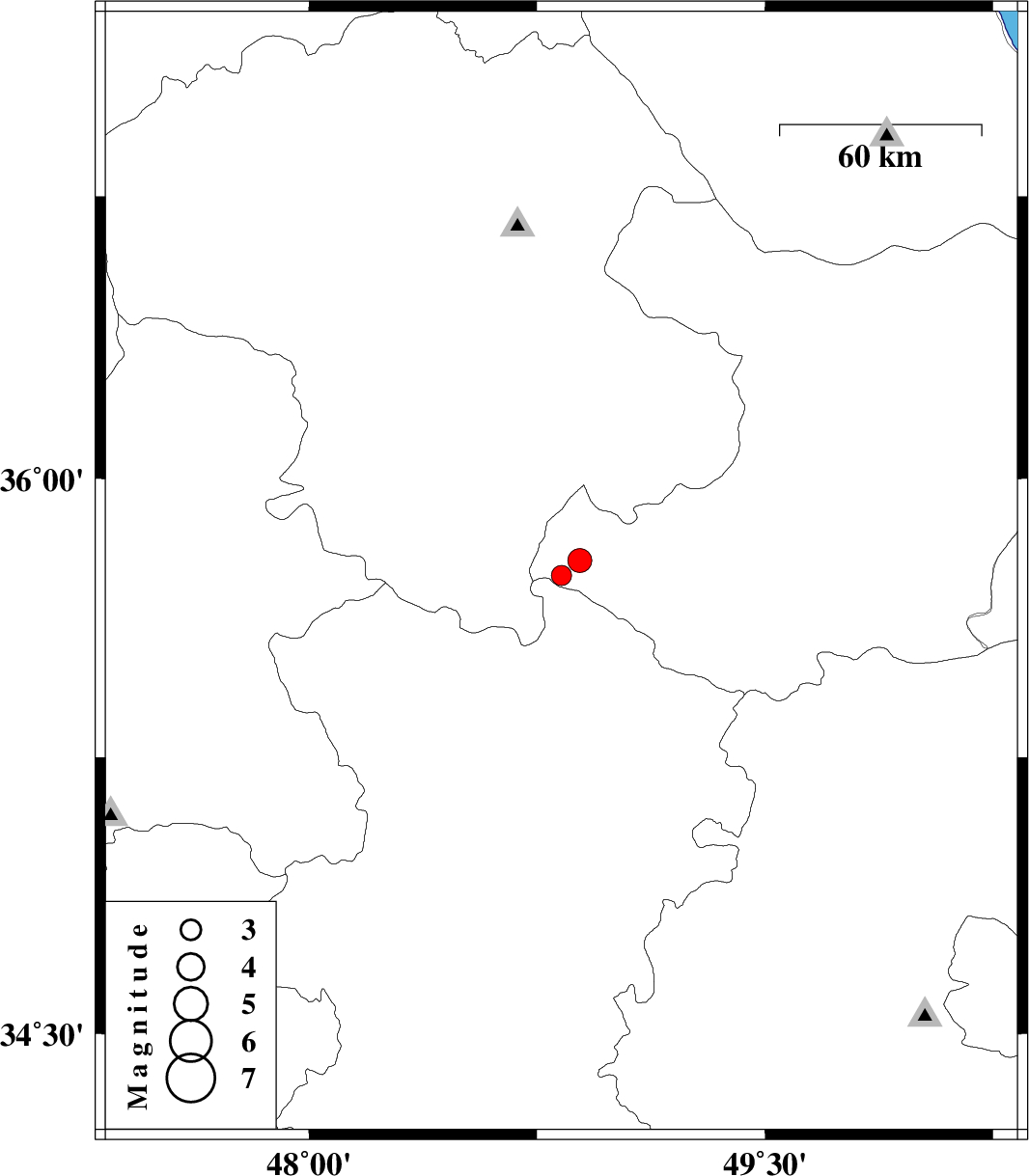 | 2010/05/20 | 09:52:28.7 | 14:22:28.7 | 35.78 | 48.89 | 14 | ML3.5 | Ghazvin Province, 46 km North-West of Razan |