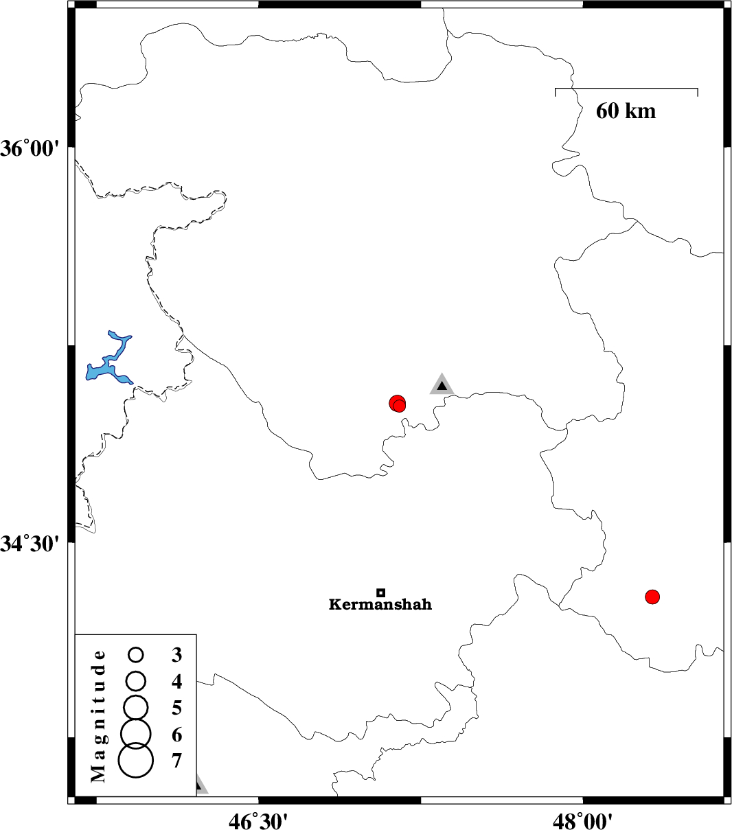 | 2010/05/23 | 06:47:51.2 | 11:17:51.2 | 34.29 | 48.32 | 15 | ML2.9 | Hamedan Province, 12 km North of Nahavand |