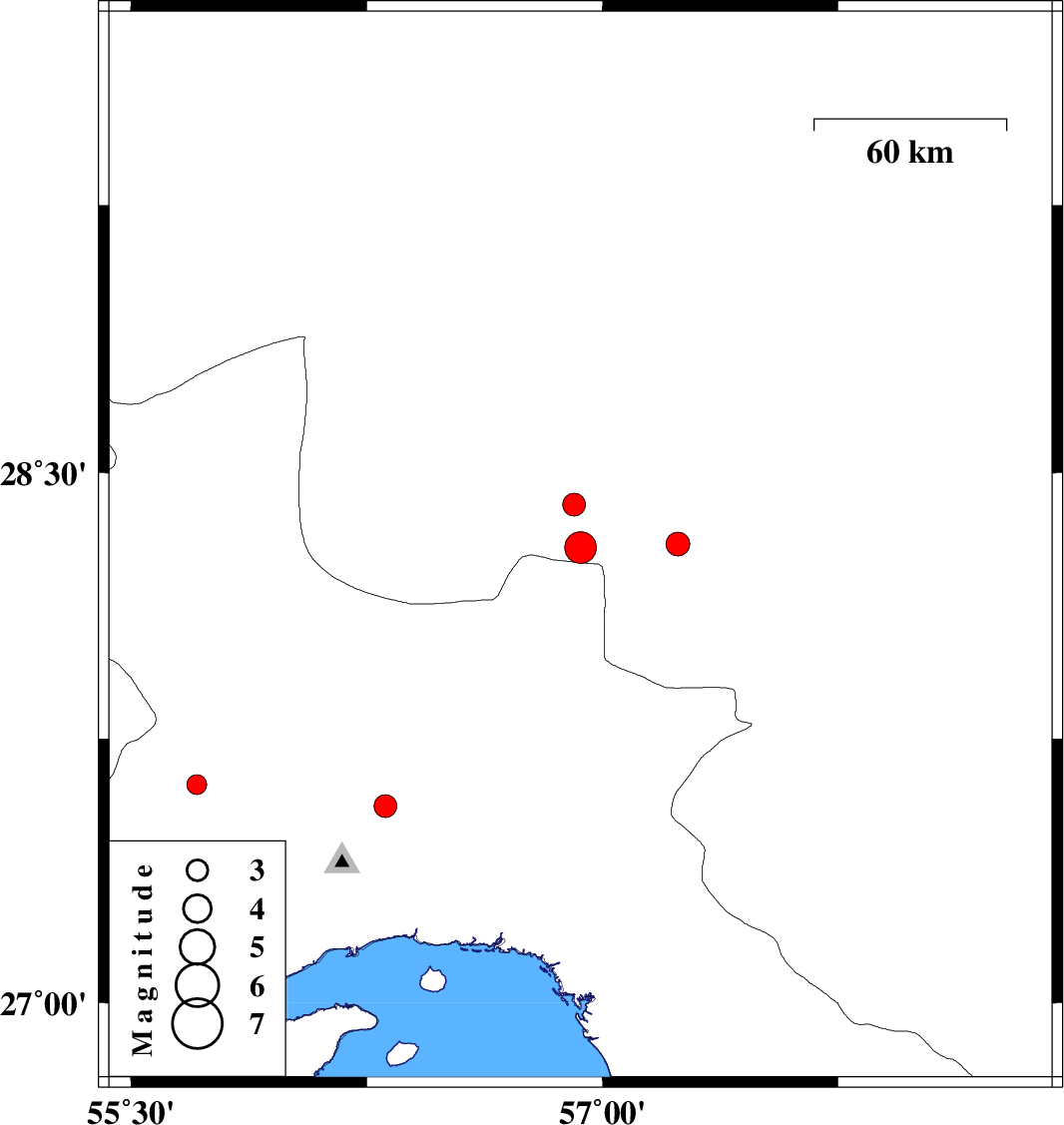 | 2010/05/28 | 11:16:55.1 | 15:46:55.1 | 26.91 | 55.73 | 6 | ML4 | Persian Gulf, 53 km West of Qeshm | ||