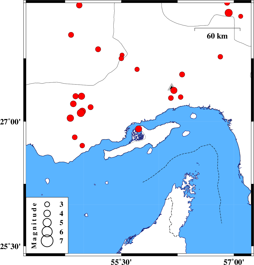| 2010/05/28 | 11:16:55.1 | 15:46:55.1 | 26.91 | 55.73 | 6 | ML4 | Persian Gulf, 53 km West of Qeshm | ||