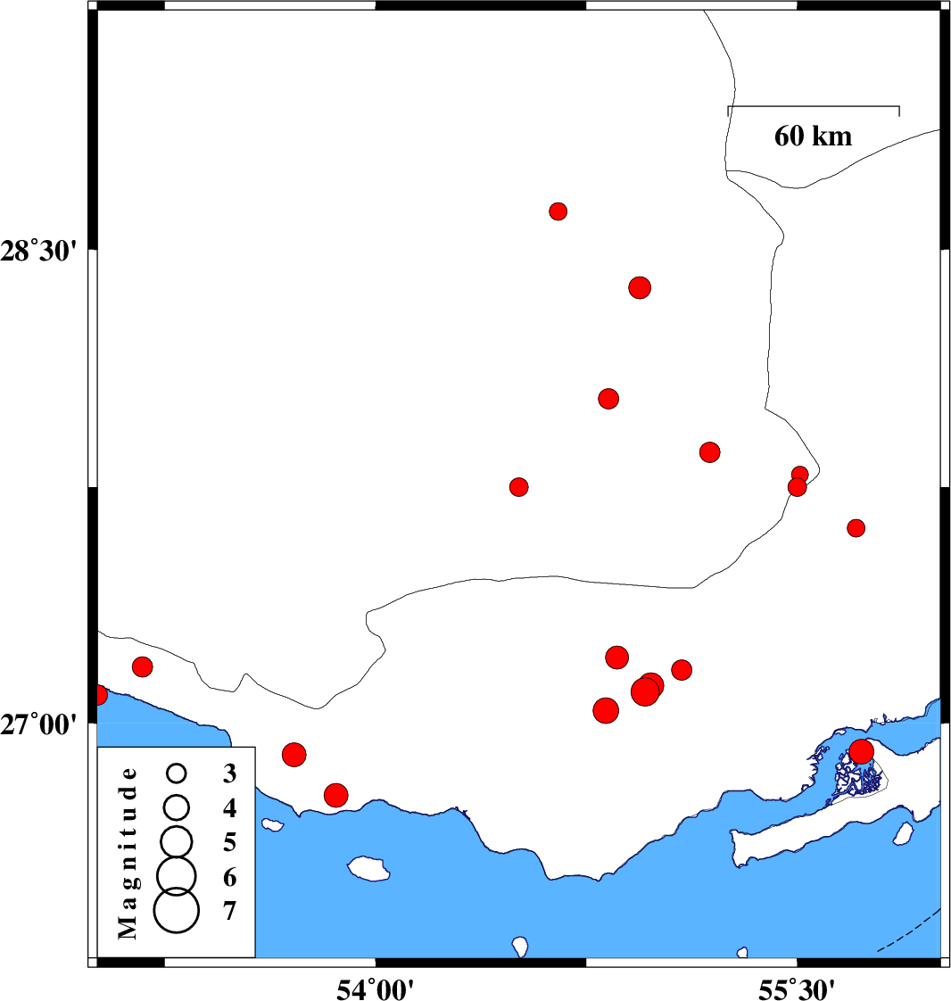 | 2010/05/28 | 11:16:55.1 | 15:46:55.1 | 26.91 | 55.73 | 6 | ML4 | Persian Gulf, 53 km West of Qeshm | ||