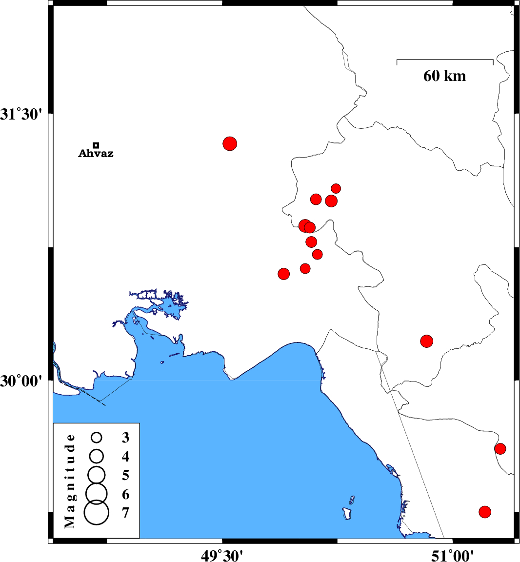 | 2010/06/07 | 02:28:10.2 | 06:58:10.2 | 30.87 | 50.04 | 26 | ML3.8 | Kohkiluieh va boyerahmad Province, 34 km North-East of Omidiyeh | ||