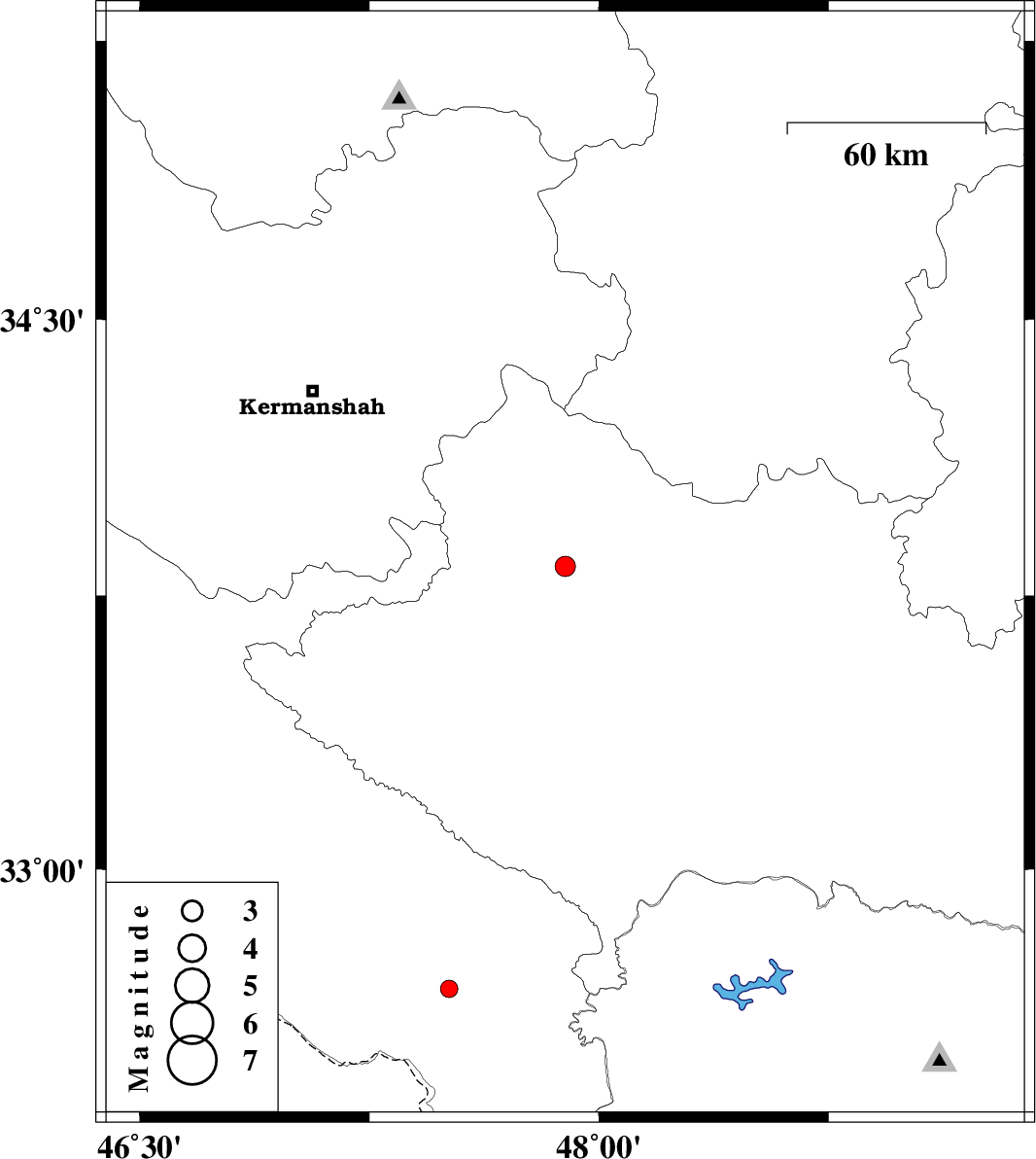 | 2010/06/14 | 20:03:17.3 | 00:33:17.3 | 33.83 | 47.89 | 15 | ML2.9 | Lorestan Province, 29 km South of Nurabad | ||