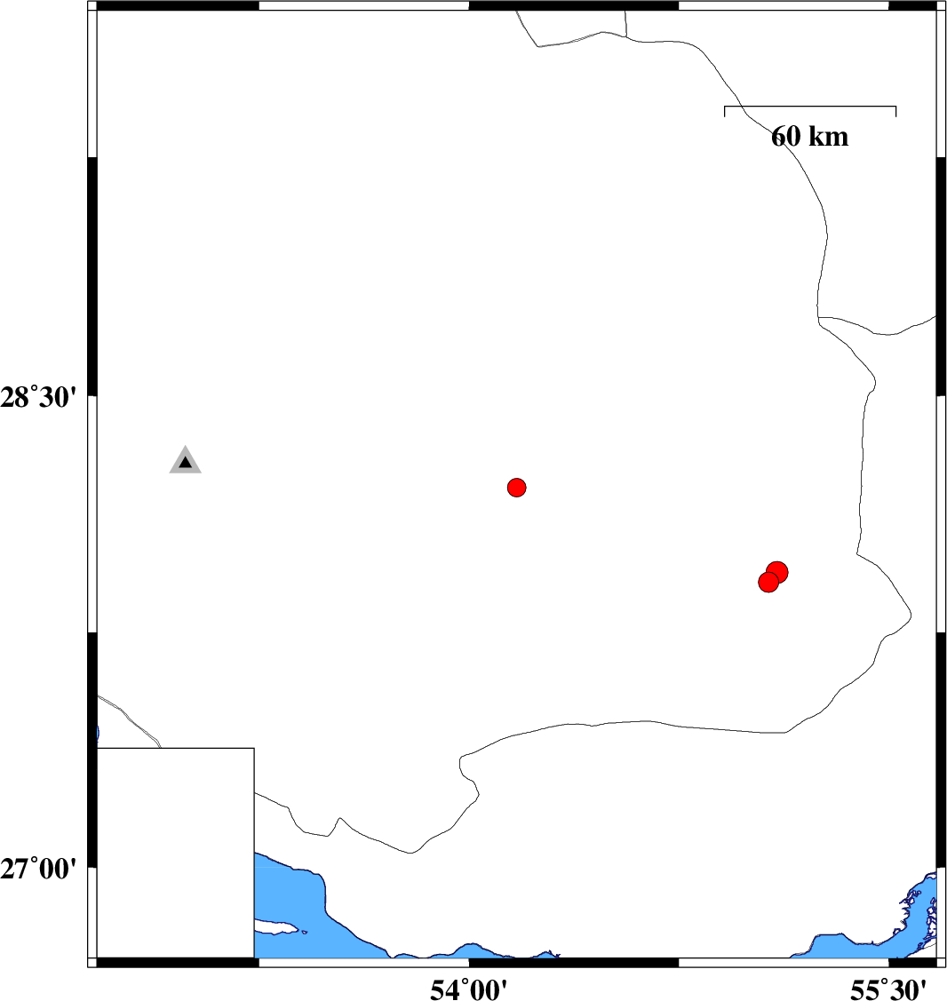 | 2010/06/07 | 00:57:33.2 | 05:27:33.2 | 27.94 | 55.1 | 18 | ML3.5 | Fars Province, 80 km North-East of Lar |