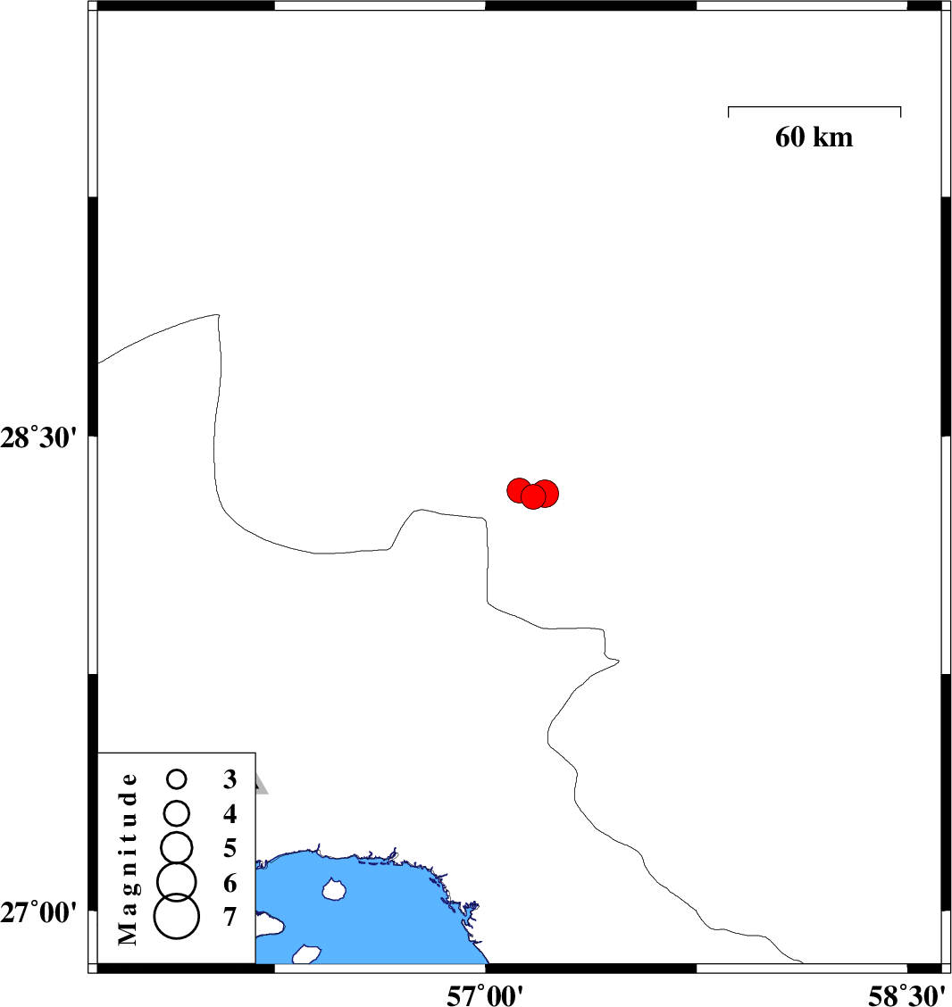 2010/06/14 04:13:45.8 08:43:45.8 28.3357.1215 ML4 Kerman Province, 70 km North-West of Kahnuj