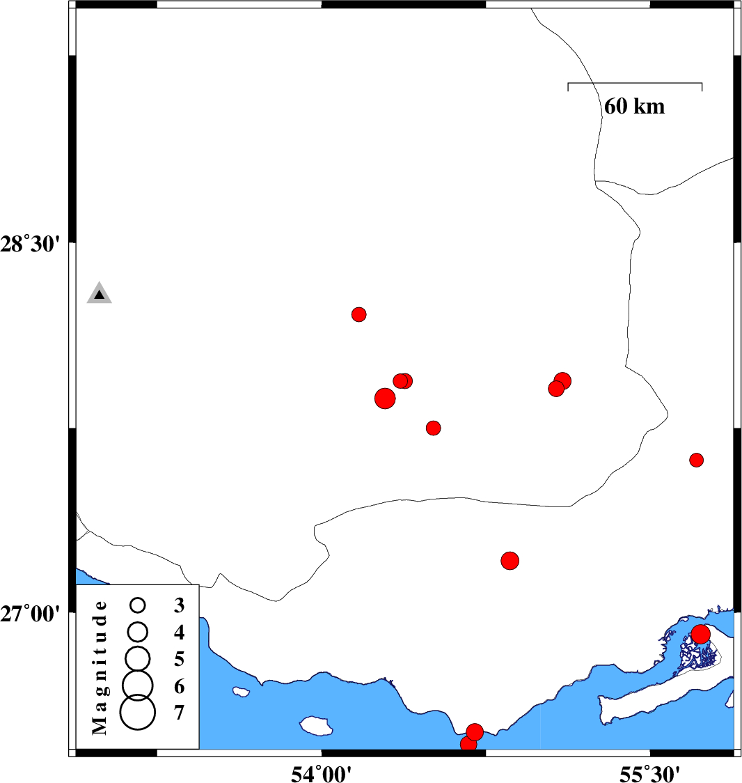 | 2010/05/28 | 11:16:55.1 | 15:46:55.1 | 26.91 | 55.73 | 6 | ML4 | Persian Gulf, 53 km West of Qeshm | ||