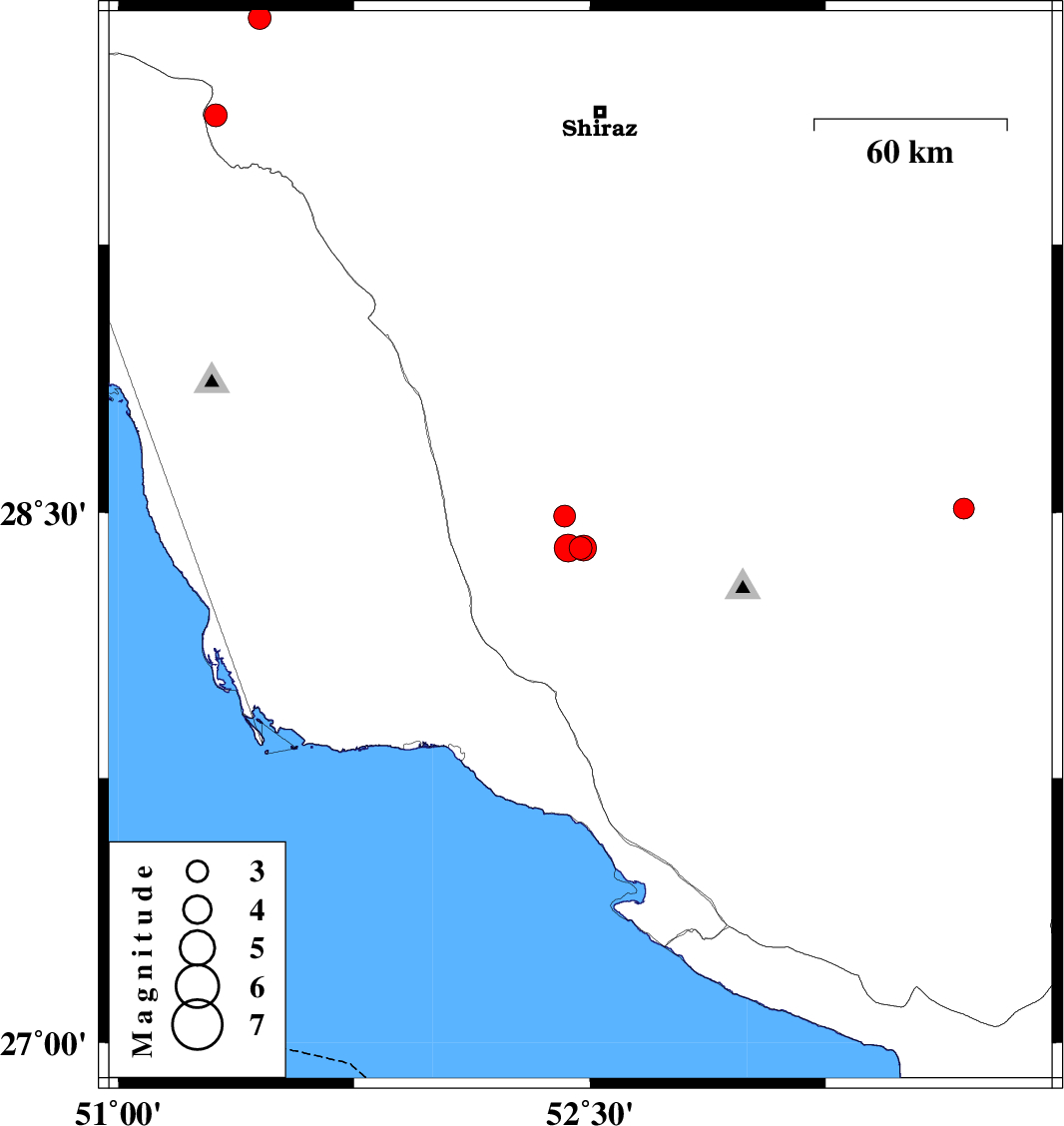| 2010/06/08 | 10:21:08.4 | 14:51:08.4 | 29.61 | 51.31 | 15 | ML3.3 | Fars Province, 34 km West of Kazerun | ||