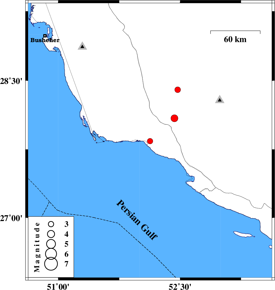 | 2010/07/03 | 08:50:40.3 | 13:20:40.3 | 27.84 | 52.13 | 14 | ML3.1 | Bushehr Province, 7 km Bandar-e kangan | ||